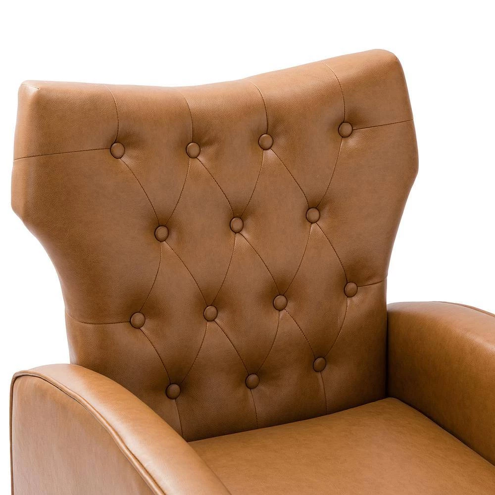 - Material: Founded atop a sturdy solid and manufactured wood frame, it is upholstered in a smooth and cozy faux leather fabric, and filled with high-density foam for comfort.
