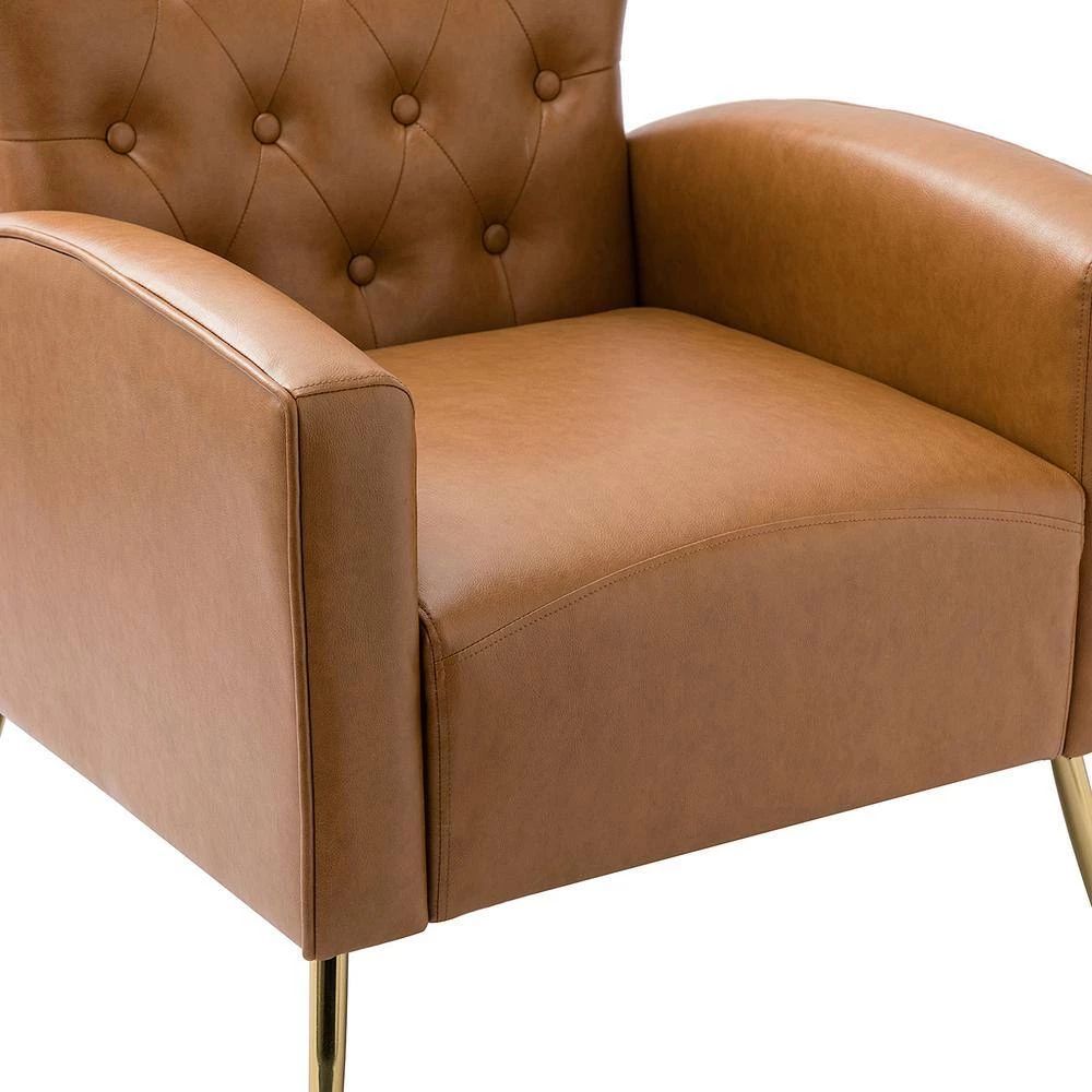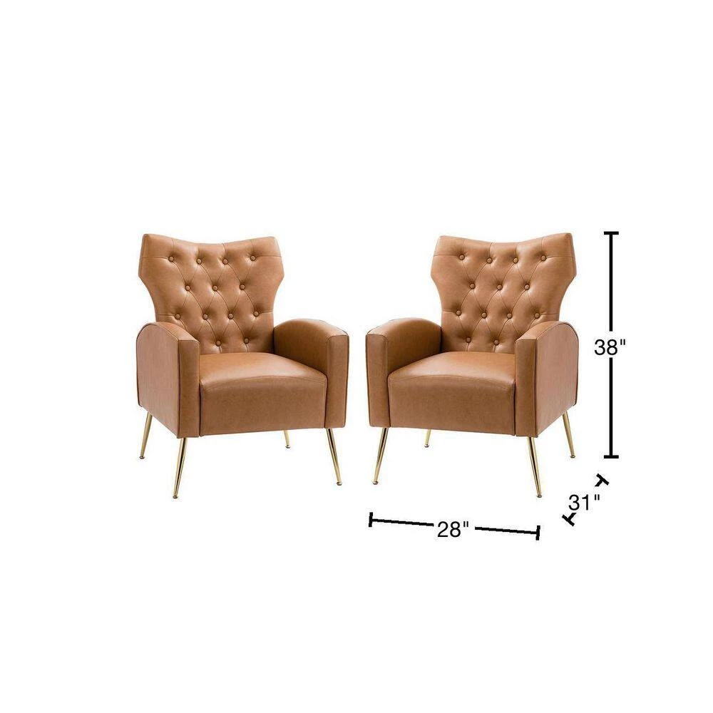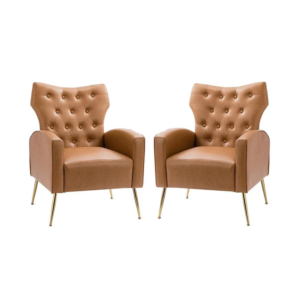 Whether you need a spot to curl up with a good book or somewhere to lay out clothes for the next day, this streamlined armchair set is a versatile addition to your space. This is the classic and contemporary style accent chair set with a wingback design. Made with faux leather fabric, comfortable for skin touch, and features an on-trend solid hue that’s bound to blend in with your color scheme. High-density foam filling with a solid and manufactured wood frame provides comfort and support. The slender polished golden metal legs bring modern design and add to the timeless fashion of this piece. Plus, this armchair set is defined by an iconic silhouette with a dramatic button tufted back and piped edges, while the chair set features detail stitching for a tailored touch. It’s the perfect pick for the living room, office room and bedroom.