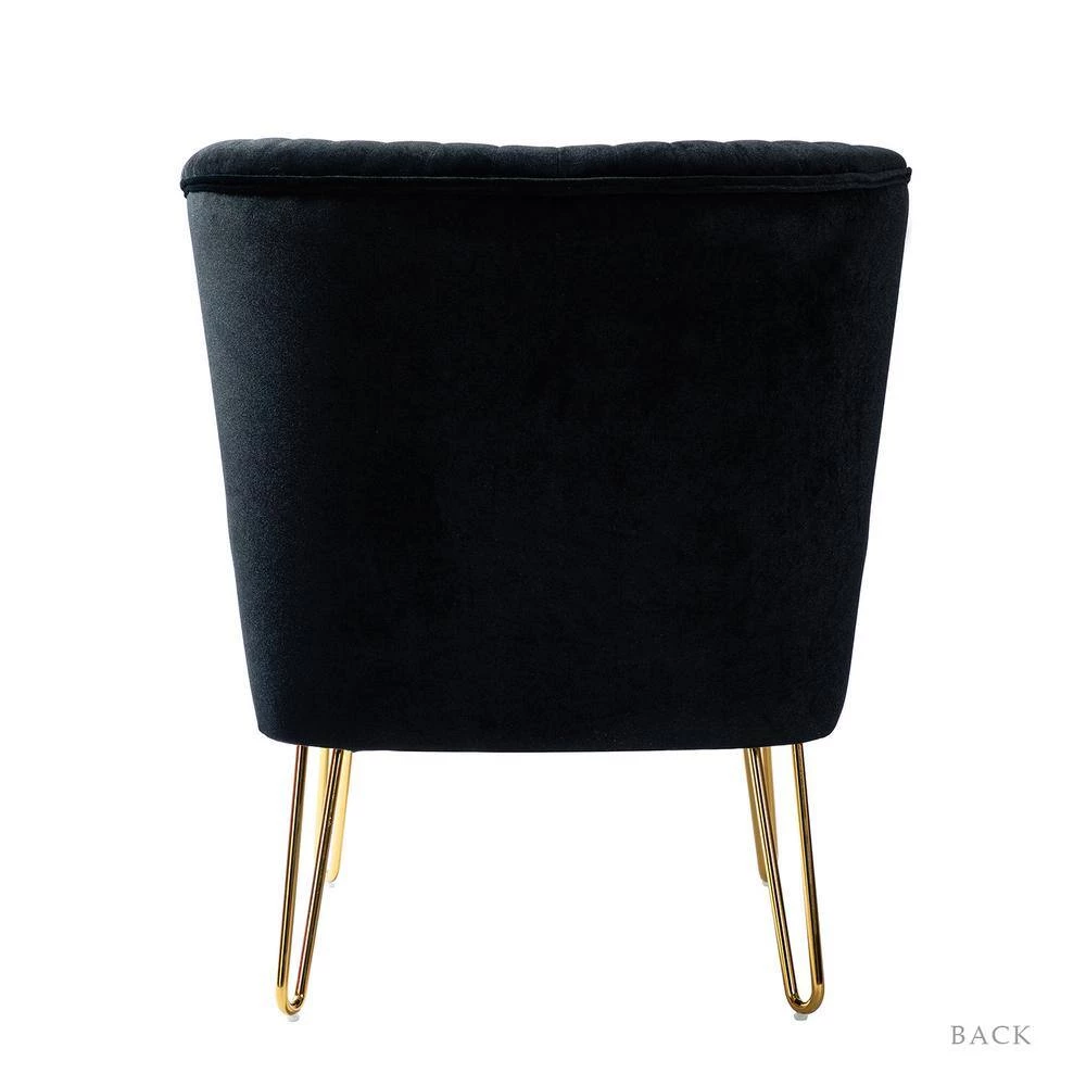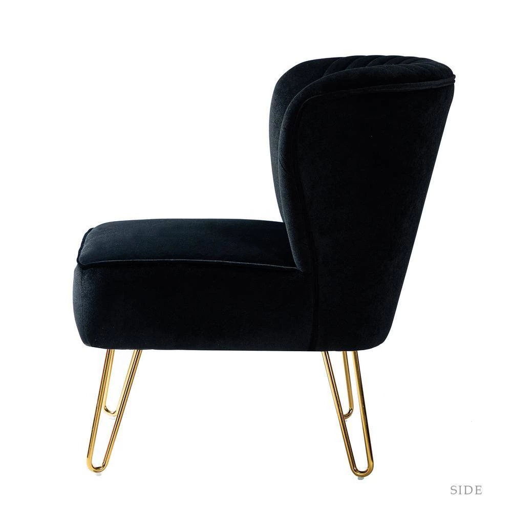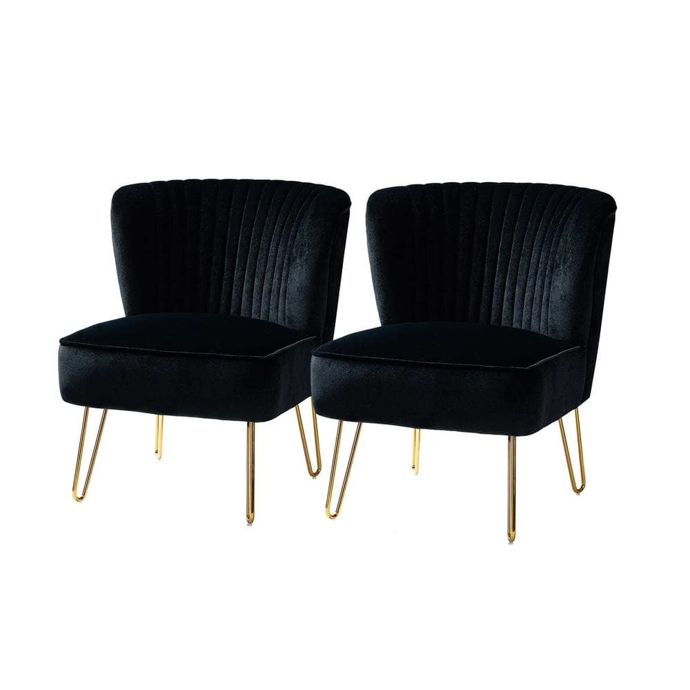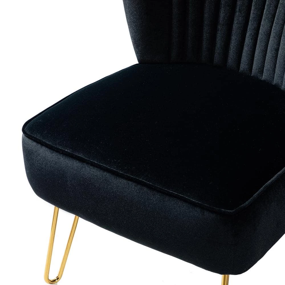 Looking to add side chairs to your living room or bedroom? This one is in keeping with your glam sensibilities, adding an eye-catching touch to your space. This is the classic and contemporary style accent chair with channel tufted back. Made with premium velvet-fabric, comfortable for skin touch, and features an on-trend solid hue that’s bound to blend in with your color scheme. High-density foam filling with a solid and manufactured wood frame provides comfort and support. The polished golden metal U-shaped legs bring modern design and add to the timeless fashion of this piece. Plus, this chair’s armless seatback leaves plenty of elbow room for existing furniture. It’s the perfect pick for living room, office room and bedroom.
