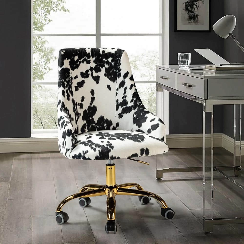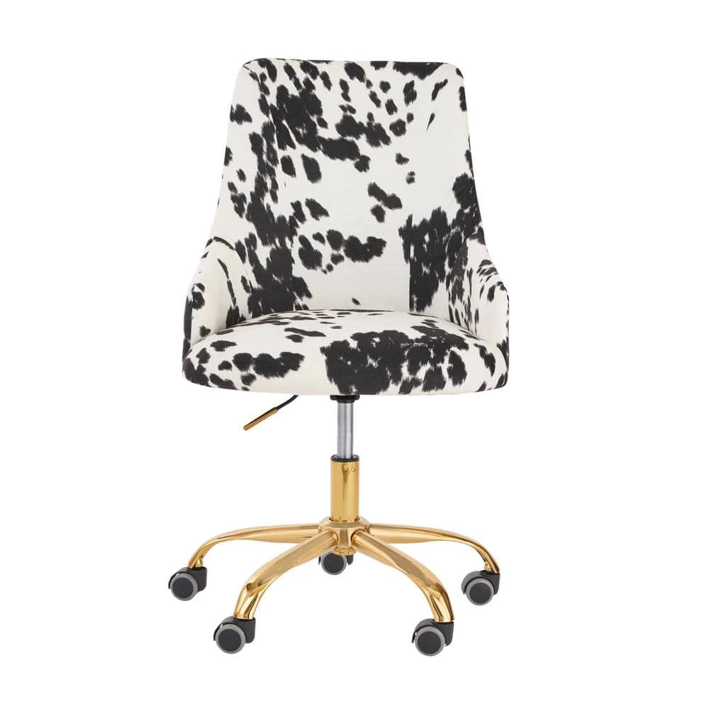 A well-edited workspace calls for a carefully-curated chair – and this design is it! It offers supreme comfort thanks to its ergonomic shape and features a durable frame with soft filling. The bright and colorful finish will blend with most color palettes. Its classic design along with its elegant pattern makes this chair a must-have in your home office. Durable metal five-pronged base and high performance all directional wheels allow smooth movement across carpeting. This chic design is height-adjustable to personally tailor your space.