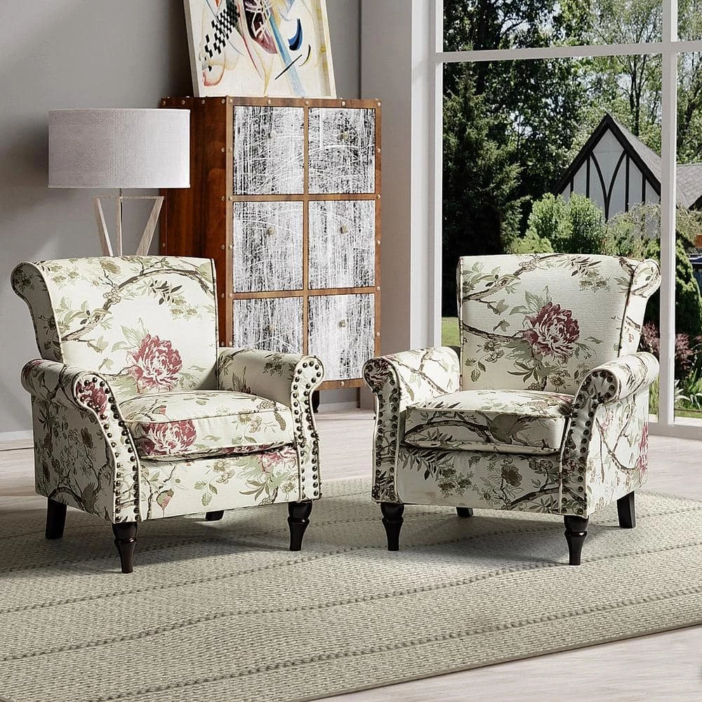 Designed to be a shining focal point wherever it settled, you can rely entirely on this charming accent armchair set including 2-single chairs. Gathering all fashion elements in one-Piece, it’s gonna wow your home seating arrangement with integrated traditional details and contemporary aesthetics. Classic rolled arms and seatback, delicate nailhead trim, as well as various selectable stunning patterns, work together to make this impressive statement. Its beautifully carved solid wood legs support the upper sturdy wooden frame ensuring reliable durability and high quality, plus comfortable foam filling, textured polyester upholstery, and built in pocket spring to raise the seating amenity. This practical art of work boasts unique glamour adding many characteristics to modern home decortion. Fit well in the living room. bedroom. office, and other scenes thanks to the contemporary yet classic outlook, all you need to do is add this wonderful set to your cart and bring it home.