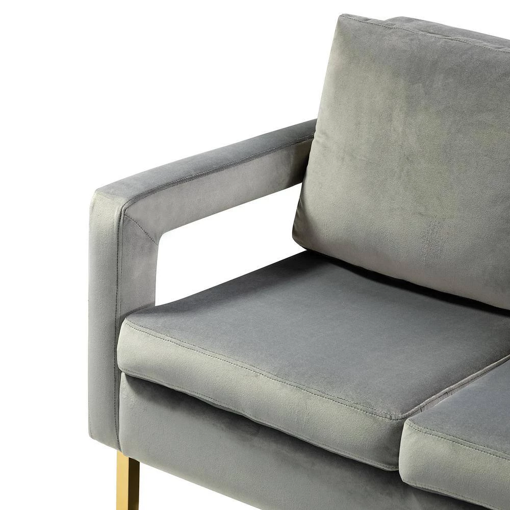 Whether you’re adding a contemporary touch to your glamorous entertainment space or complementing a loveseat sofa in the den, this understated sofa provides a fresh and pleasing appeal to your space and will be the center of attention. The high density foam filling with a solid and manufactured wood frame provides comfort and support. Shown in a beautiful velvet upholstered fabric, this loveseat’s sleek lines, gentle removable cushion and open arms round out your living room decor. Modern gold metal legs and a linear profile lend itself to serene comfort perfect addition to small spaces. The elegant loose back with skin-friendly and breathe surface expresses the comfort. This small loveseat sofa for you and your loved one brings the soft and warm enjoyment at home. Whether you are looking for an intimate conversation with loved one or a place to stretch out in style, you will be well covered. This loveseat will have no problems blending into your home decoration with its natural and modern style and incredible durability. It’s the perfect pick for bedroom, living room and other scenes.