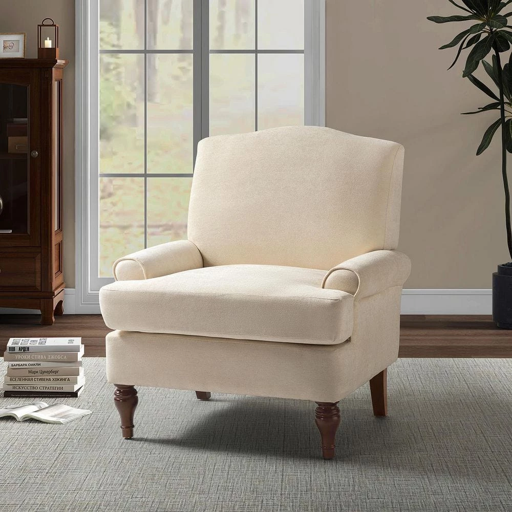 This accent chair easily ties together any study or living room for an effortlessly curated look. Each chair has a wood frame and natural finish wood legs. Wrapped in a soft yet skin-friendly interior, their foam-filled curved spring pads provide extra support. These armchairs feature a streamlined back and soft lines, as well as dependable armrests. The classic wooden leg design provides a visual variation that complements the traditional American country design scheme. Easy maintenance features are built into these chairs: each chair has a removable seat cushion to facilitate your daily cleaning.