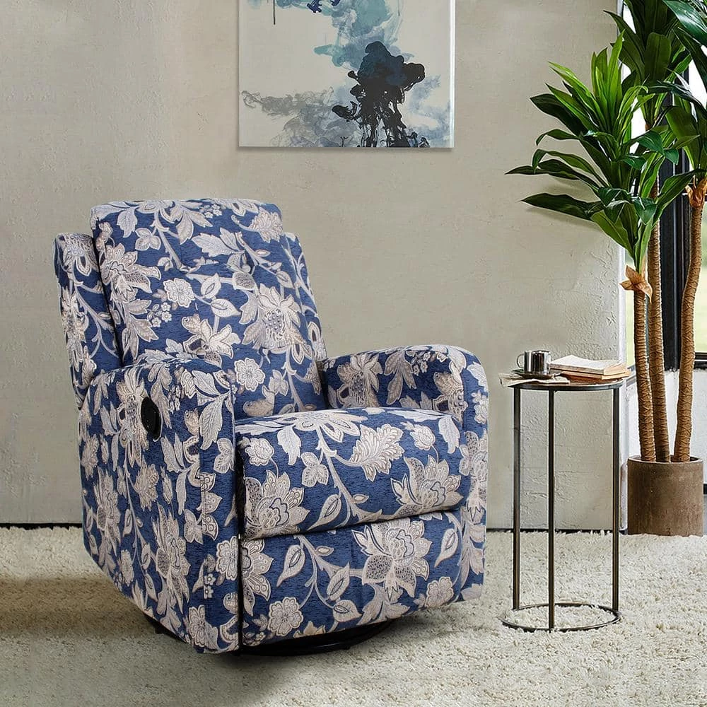 Whether you need it to round out your living room look or accent the master suite, this rocker recliner is the perfect spot to unwind. This chair exudes ease and comfort when both upright and in the reclining position while the wingback and tufted design creates a striking contemporary look. Crafted from solid and manufactured wood, this rocker recliner shows a modern appearance for simple yet fashionable charm in any living room. A simple design with swivel function can turn in and out of conversations with ease. Reclining through the side button, its comfortable seat and back support for long-term sitting or TV viewing. It is a perfect choice for living room, media, and master bedrooms. (Weight Capacity:300 lbs)