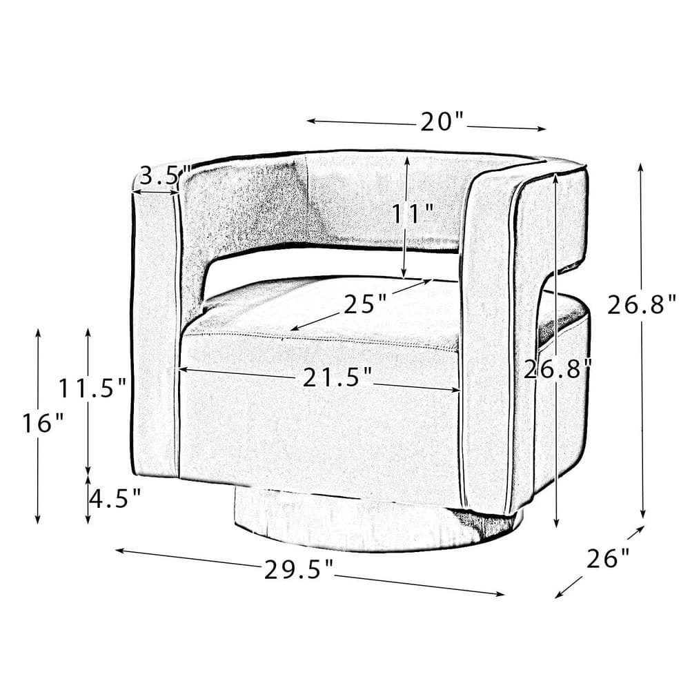 Whether you need a spot to curl up with a good book or somewhere to lay out clothes for the next day, this streamlined barrel chair is a versatile addition to your space. This is the classic and contemporary style accent chair with open back. Made with premium velvet fabric, comfortable for skin touch, and features an on-trend solid hue that’s bound to blend in with your color scheme. High-density foam filling with a solid and manufactured wood frame provides comfort and support. The golden metal base brings modern design and adds to the timeless fashion of this piece. Plus, this chair features a swivel base so you can turn in and out of conversations with ease. Place two together to create a conversation area or pair with arm loveseat or sofa for a cohesive looks. It’s the perfect pick for living room, office room and bedroom.