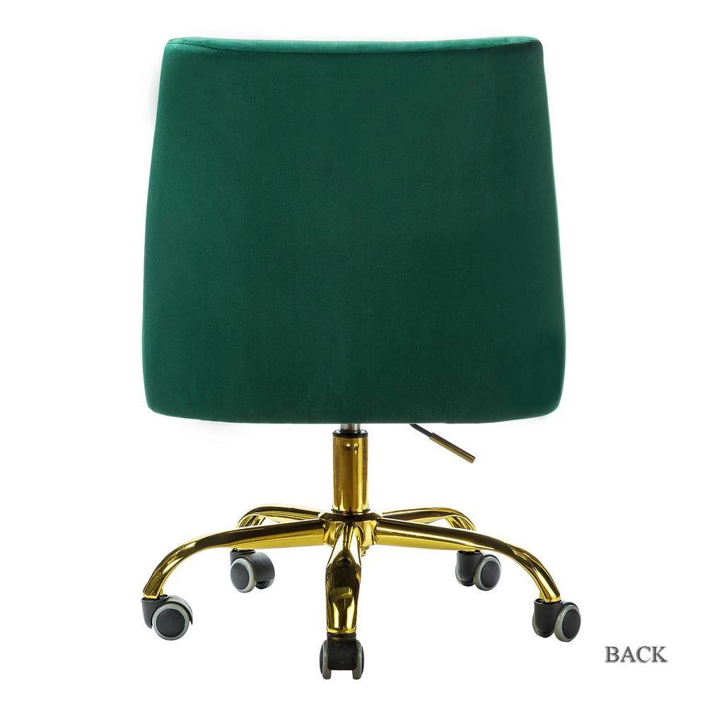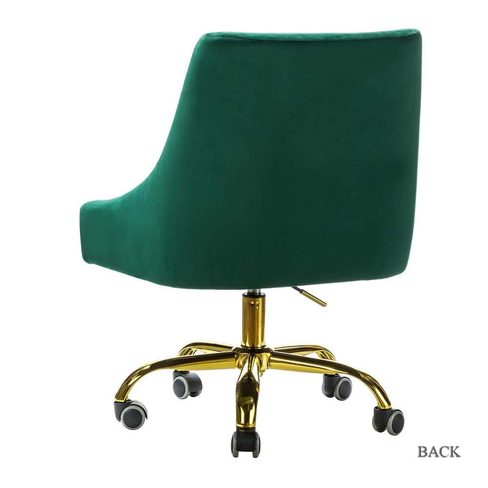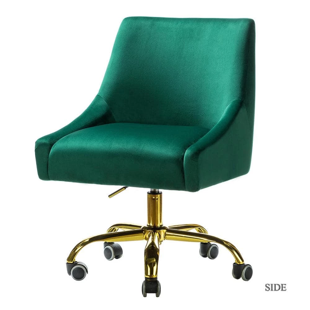 A well-edited workspace calls for a carefully-curated chair and this design is it. It offers supreme comfort thanks to its ergonomic shape and features a durable frame with soft filling. The bright and colorful finish will blend with most color palettes. Durable gold finish metal 5-pronged base and high performance all directional wheels allow smooth movement across carpeting. This chic design is height-adjustable to personally tailor your space.