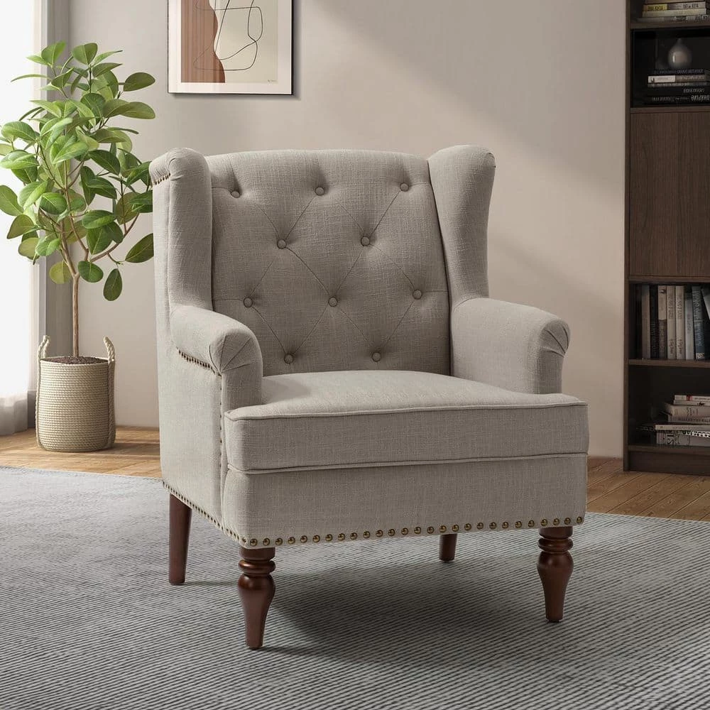 Bring freshness to your home with this stylish armchair. It is made with a sturdy wooden frame and rests on oil-painted wooden legs walnut. 100% polyester interior covers a fluid profile with comfortable hands and a secure back. The seats are filled with thick foam to support you as you relax after getting off work or reading at night. Welded edges and nailhead trim add a tailored touch and style. Plus, its seat cushion is removable, so any debris can be easily cleaned away. At 250 lbs, it’s great for giving you peace of mind.