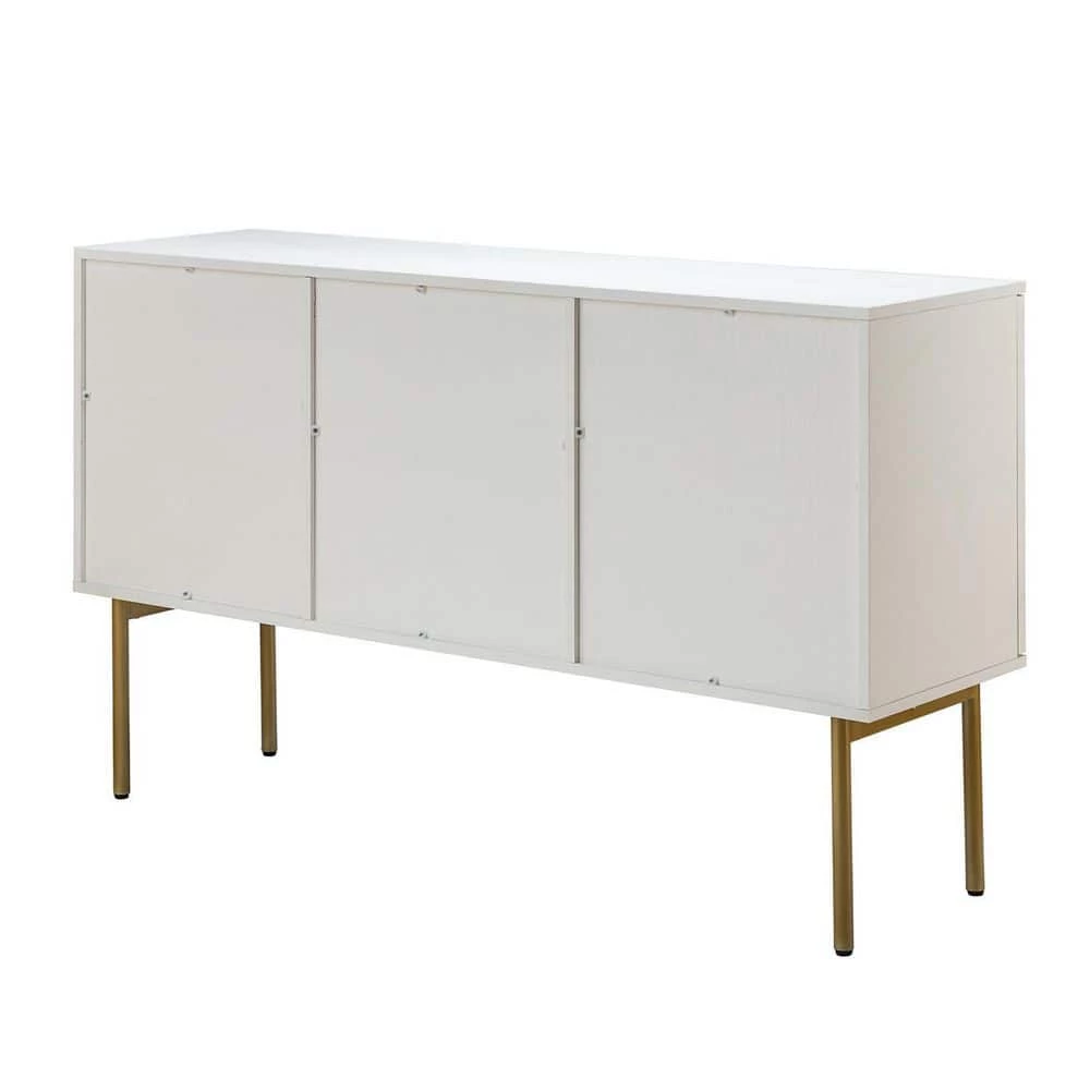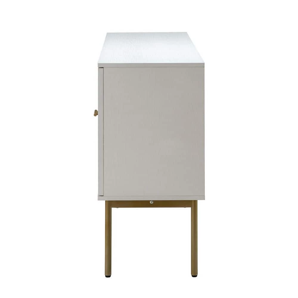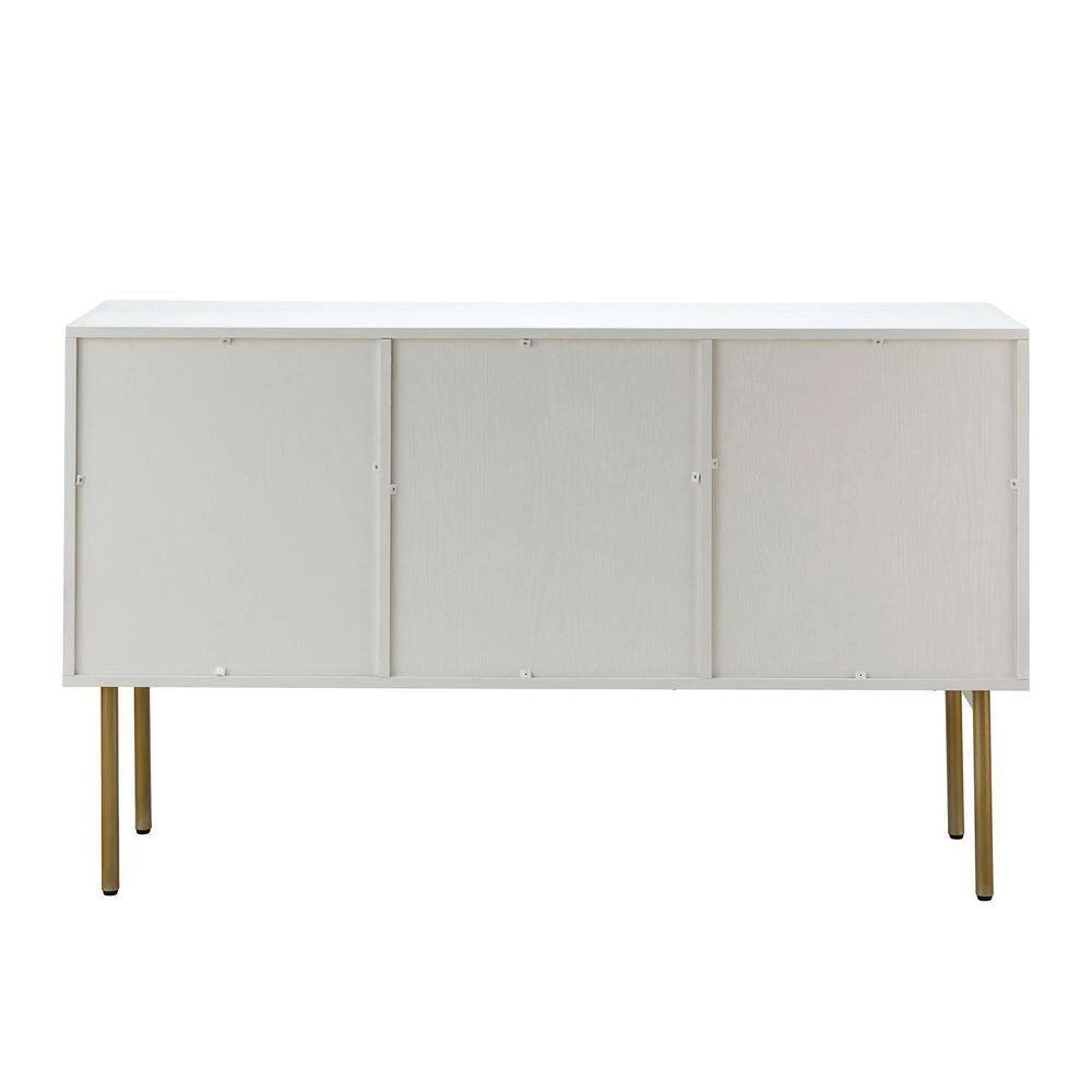 This modern sideboard brings luxury style to your dining room, living room, or kitchen. It is made of sturdy wood with rattan for a different appeal. Sleek metal hardware and geometric frame doors elevate the look. This sideboard has water- and stain-resistant rattan doors for enhanced breathability, so you have an ideal space for cutlery, extra linens, and even media components. Plus, the right size is enough to fit in a limited space, saving you the hassle. This sideboard can improve your space utilization and beauty, add it to your cart.