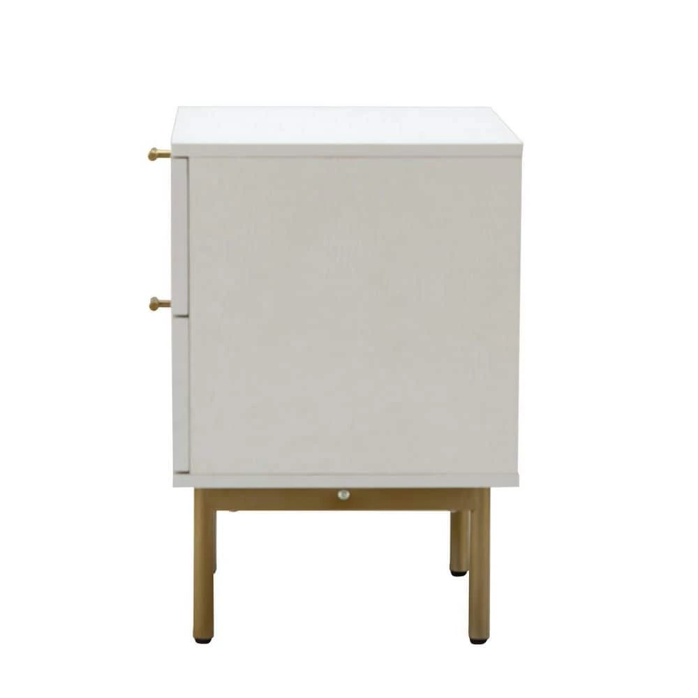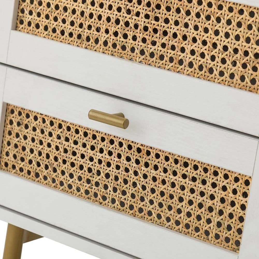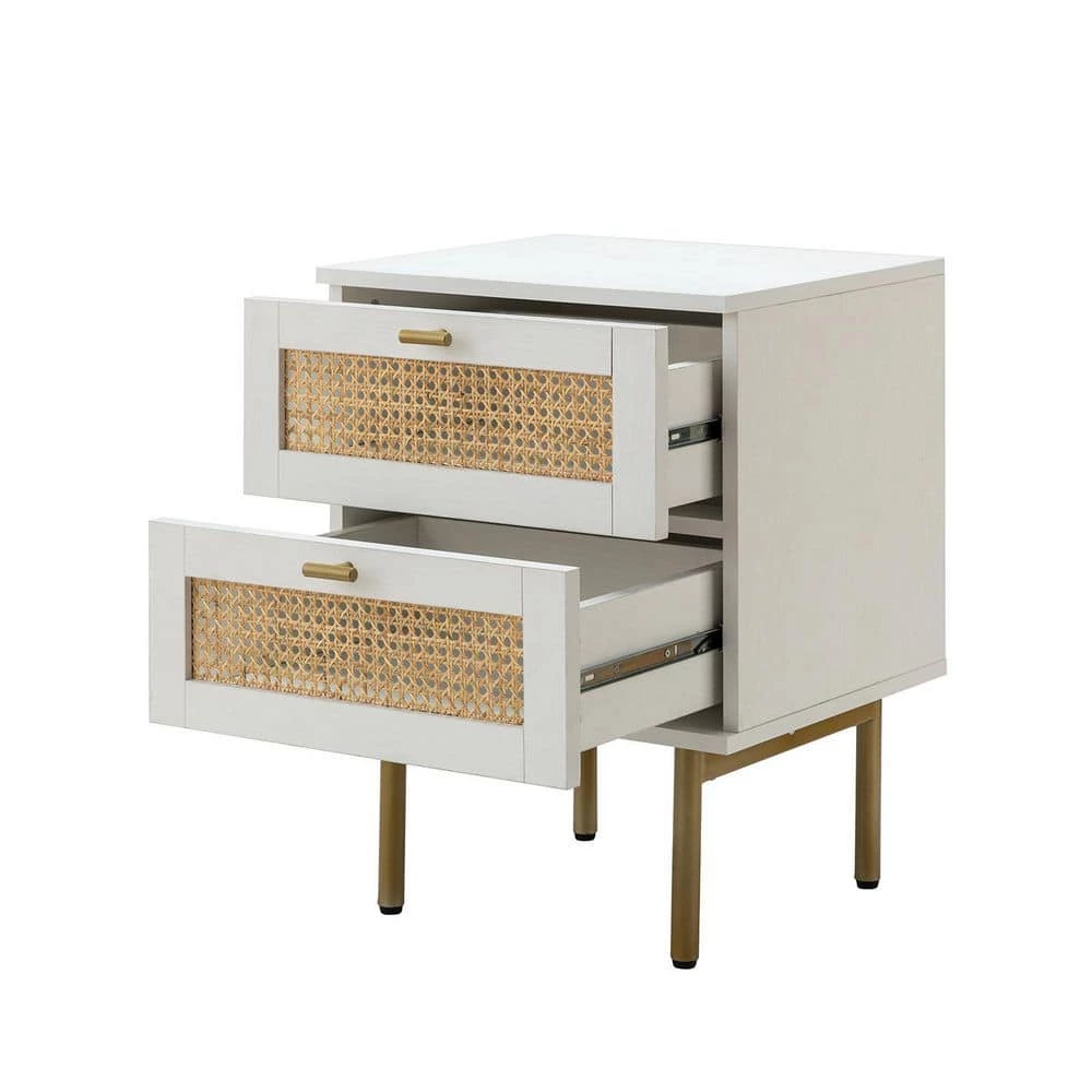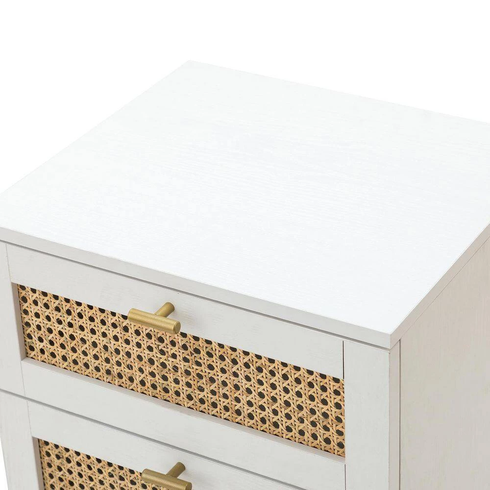 This nightstand set will meet all your storage needs in your bedroom or living room. The nightstand set features two drawers and a spacious tabletop that fits into the comfort of your home, providing more space to put down books, snacks, and drinks. The top tabletop is perfect for holding lamps, clocks, books, etc. The frame of the nightstand set is made of metal and synthetic wood, which guarantees long life. The four metal legs and adjustable pads protect your floor from scratches. The easy pull handle makes the drawer open and closes smoothly. The rattan design on the drawers adds a touch of unadorned elegance to your space. The perfect storage addition to a small room, this space-saving nightstand set fits into any existing decor, providing more space for a stylish home look.