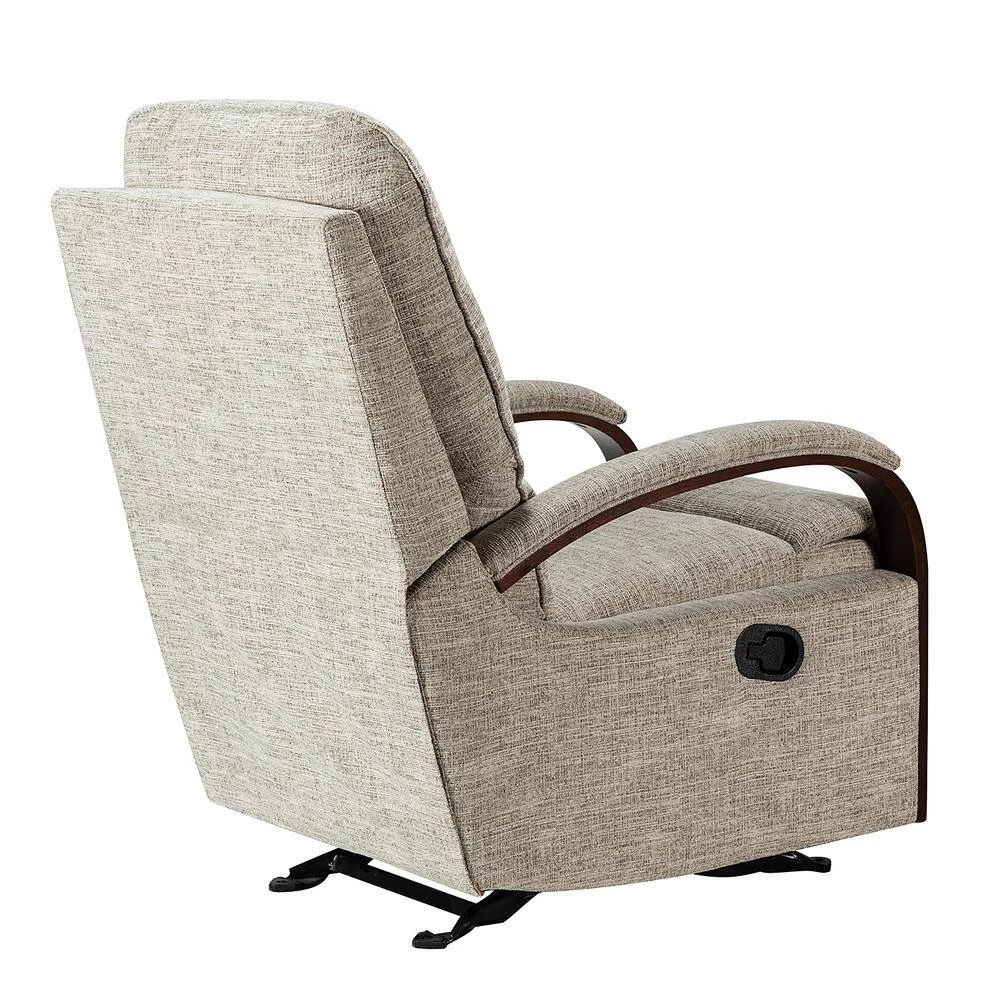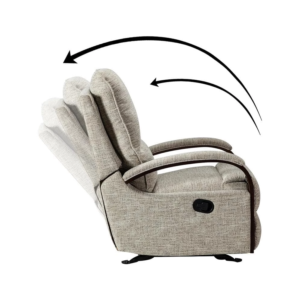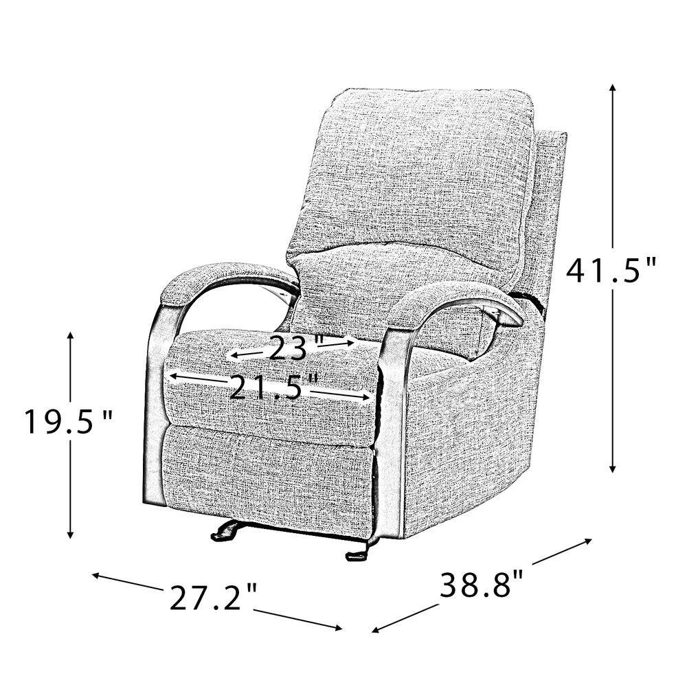 When it comes to elevating your living room look or accent the master suite, this modern rocking recliner is the perfect spot to unwind. With a soft cushion padded backrest, this stylish manual-adjusted recliner comes with a thick foam and polypropylene cotton-filled frame that exudes ease and comfort when both upright and in the reclining position. Crafted from solid and manufactured wood while offering several understated colors to suit your different home styles effortlessly, this textured recliner shows a modern appearance for simple yet fashionable charm in any living room. It’s polyester fabric wrapped and features a sturdy metal rocking base with built-in pocket spring that provide excellent support capacity. Cooperate with the hidden footrest, you can simply lie down on it to rock yourself in a hypnotic relaxation after a long day of work, perfect for the living room, media, and master bedrooms.