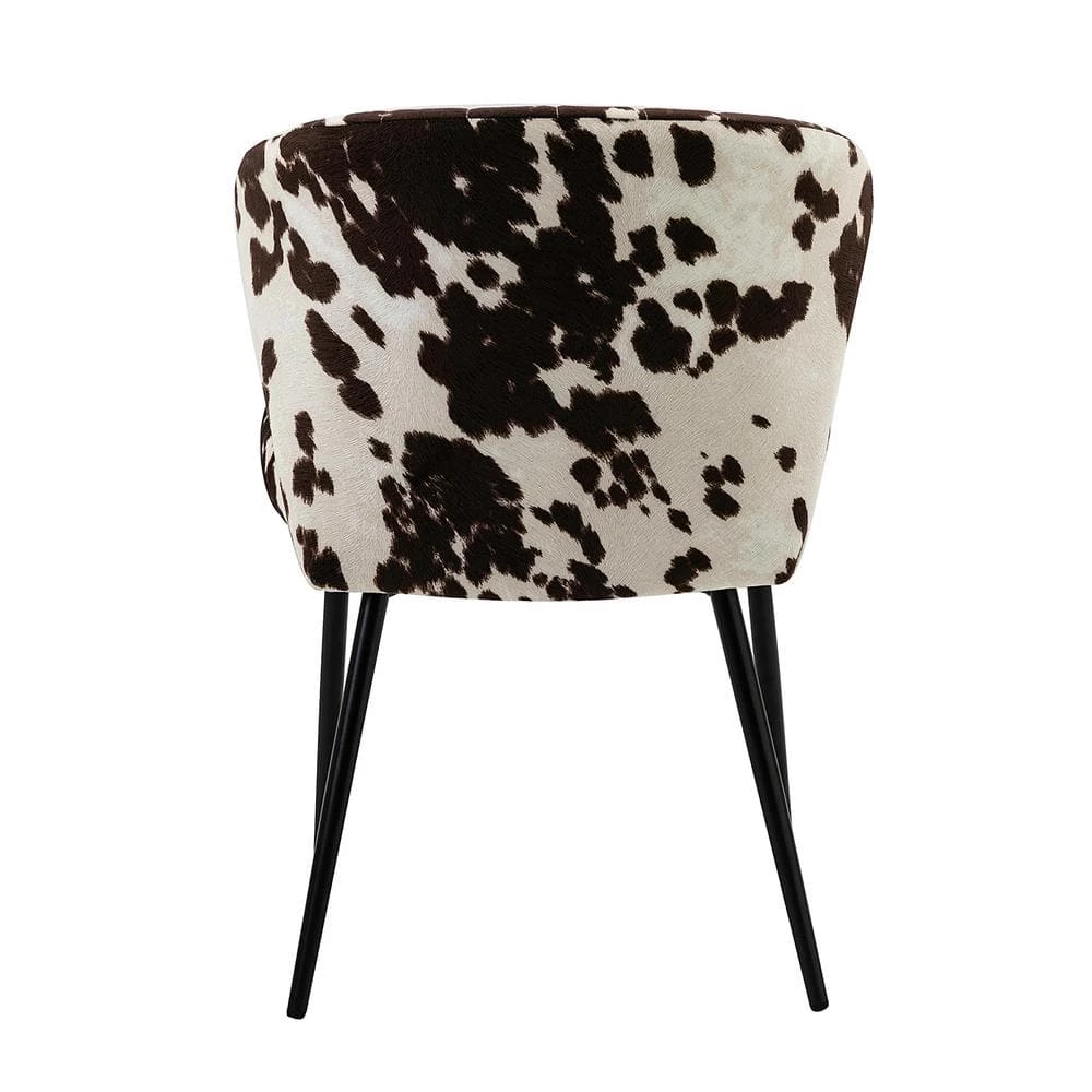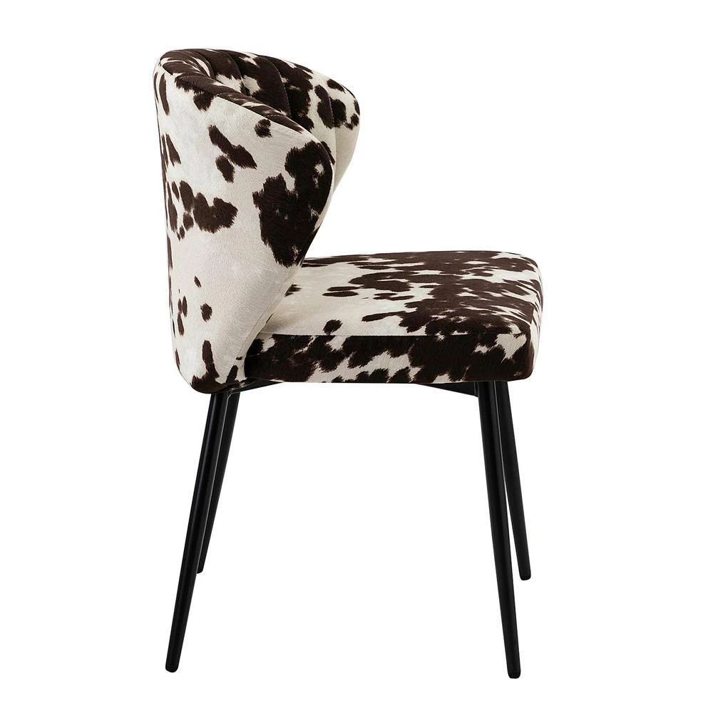 Whether you are looking for a cozy corner to kick back and relax or if you are just looking to upgrade your interior aesthetics, our accent chair is the perfect addition to any home. Featuring a minimalistic yet sophisticated design, this chair is sure to delight in both style and comfort. This side chair features a subtle wingback silhouette, vertical channel tufting, and a thick cushion to give you plenty of support as you sit, all in an animal print. The slender black metal legs bring reliable stability and add to the timeless fashion of this piece while its perfect upholstery offers outstanding comfort. Created to enhance your home or office, this chair is a great way to add enchanting personality to your space.