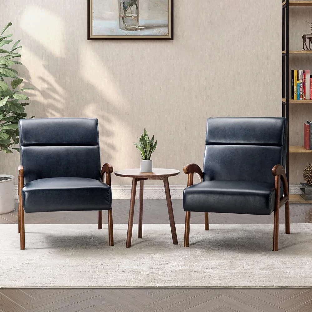 This accent chair set is a great option for rounding out your seating arrangement with an extra seat that helps complement your space’s style and is also a versatile set that helps put the finishing on your home. With a sleek Silhouette and low-profile design, the perfectly curved solid wood becomes the armrests and rear legs of the chair for an attractive look. Comfortably padded seat and back cushions are finished in rich faux leather for an elegant finishing touch. After a quick assembly, this nice armchair set can be added as a living room focal point or neatly arranged in a smaller nook.
