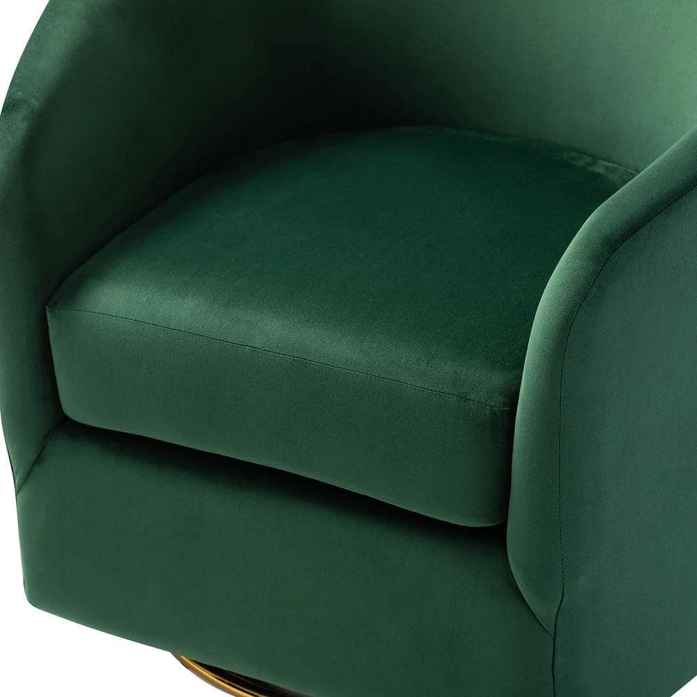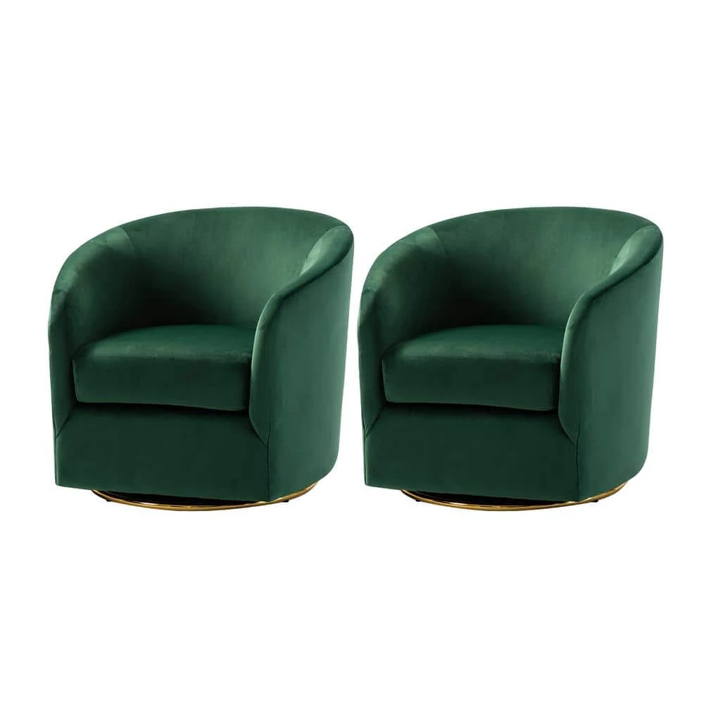 Whether you need a spot to curl up with a good book or somewhere to lay out clothes for the next day, this streamlined swivel chair set boasting a barrel silhouette is a versatile addition to your space. Including 2-single chairs, every piece of classic and contemporary style accent chair with a gold metal swivel base that helps you to turn in and out of conversations with ease. Built on a solid and manufactured wood frame with padded medium-density foam and s-spring, it shows a perfect combination of sturdy structure and extreme comfort. Wrapped with premium velvet, comfortable for skin touch, and features an on-trend solid hue that’s bound to blend in with your color scheme. It’s the perfect pick for the living room, office room and bedroom.