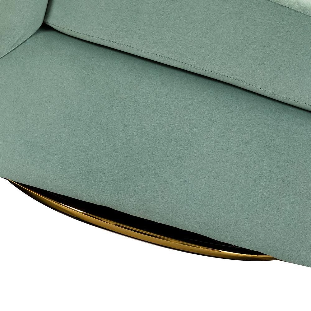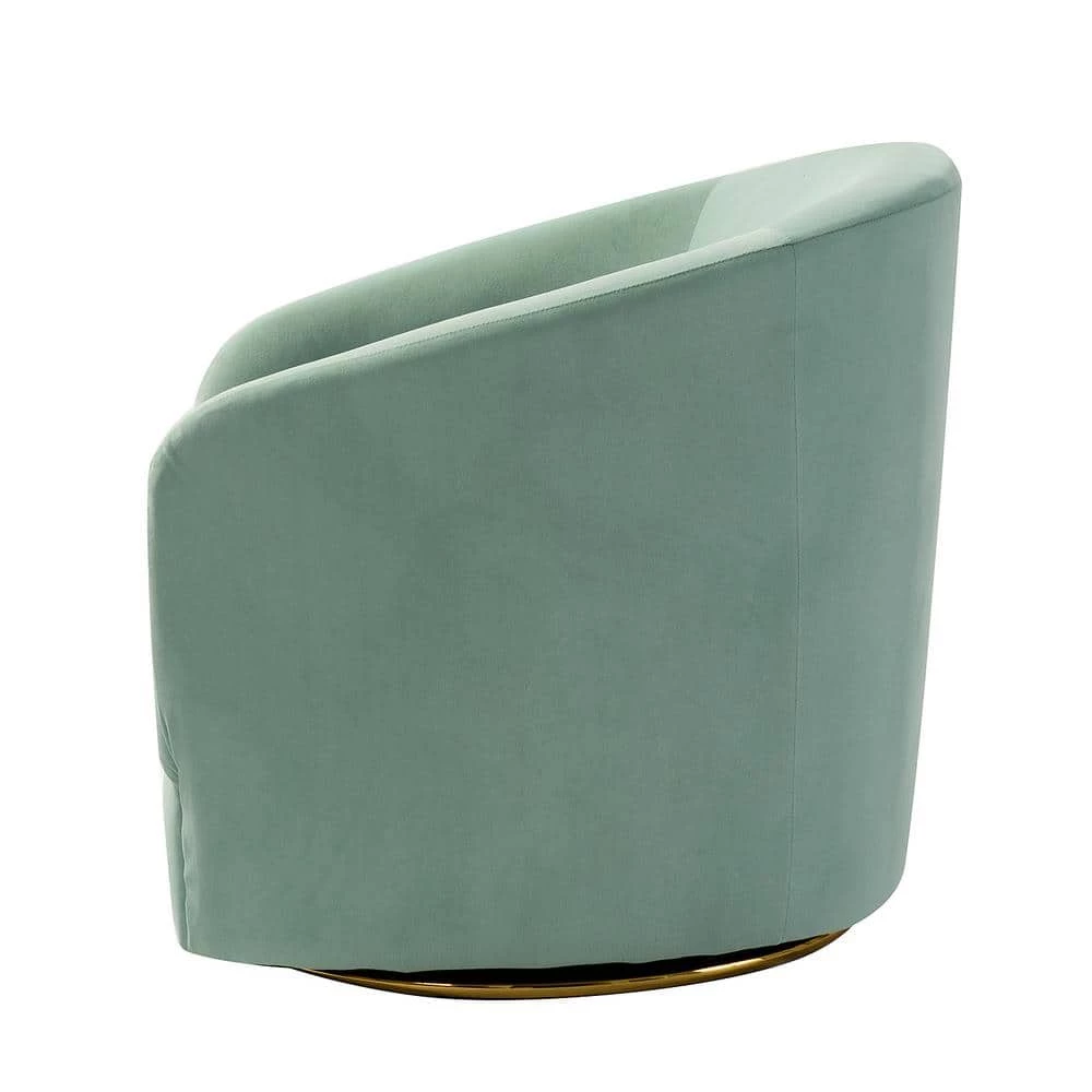 Whether you need a spot to curl up with a good book or somewhere to lay out clothes for the next day, this streamlined swivel chair boasting a barrel silhouette is a versatile addition to your space. This is the classic and contemporary style accent chair with a gold metal swivel base that helps you to turn in and out of conversations with ease. Built on a solid and manufactured wood frame with padded medium-density foam and s-spring, it shows a perfect combination of sturdy structure and extreme comfort. Wrapped with premium velvet, comfortable for skin touch, and features an on-trend solid hue that’s bound to blend in with your color scheme. It’s the perfect pick for the living room, office room and bedroom.