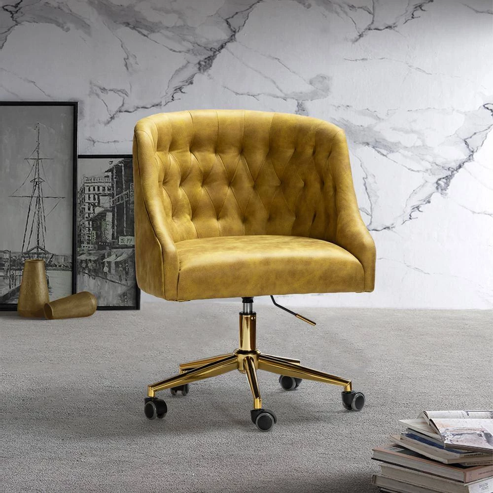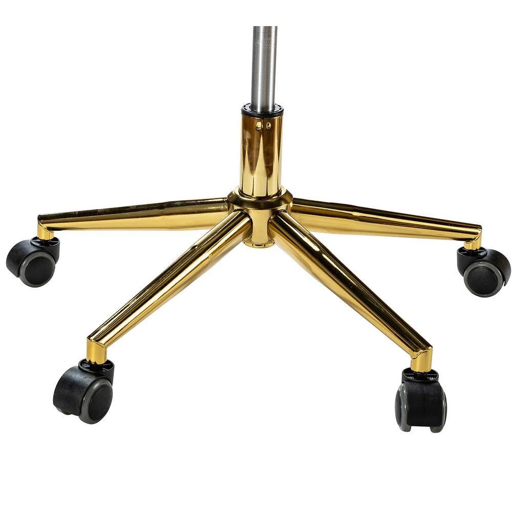 This is not your standard office chair. Its curvaceous velvet seat add a modern touch to conference rooms and fancy corner offices. It offers supreme comfort thanks to its ergonomic shape and features a durable frame and smooth-rolling casters.Durable gold finish metal legs and high performance all directional wheels allow smooth movement across carpeting. Button-tufted details dot the back for a touch of texture.This office chair is a wonderful addition to any office or home office.
