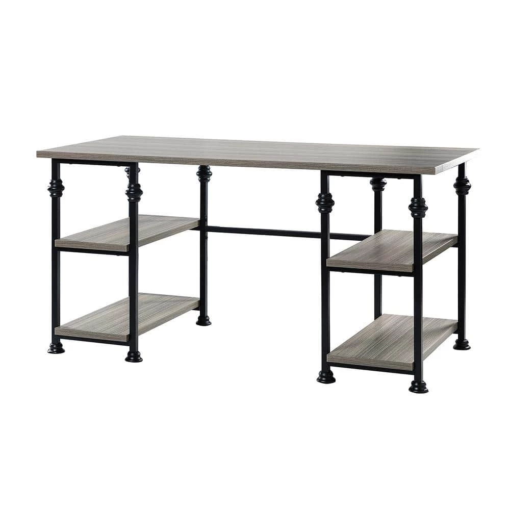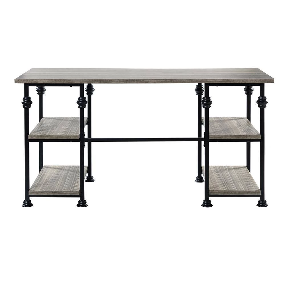 Whether crafting a DIY project or working on your next big novel, this writing desk is here to lend a helping hand. Crafted from metal in a powder-coated finish, the base features an X-frame back stretcher for a look that works well in aesthetics ranging from rustic to contemporary. It features sturdy, thick shelves and tabletop, ideal for all your office essentials, laptop, lamp, books and more. finished on all sides with a powder-coated metal frame, this transitional desk will bring an industrial edge to your office.