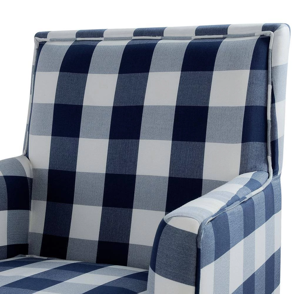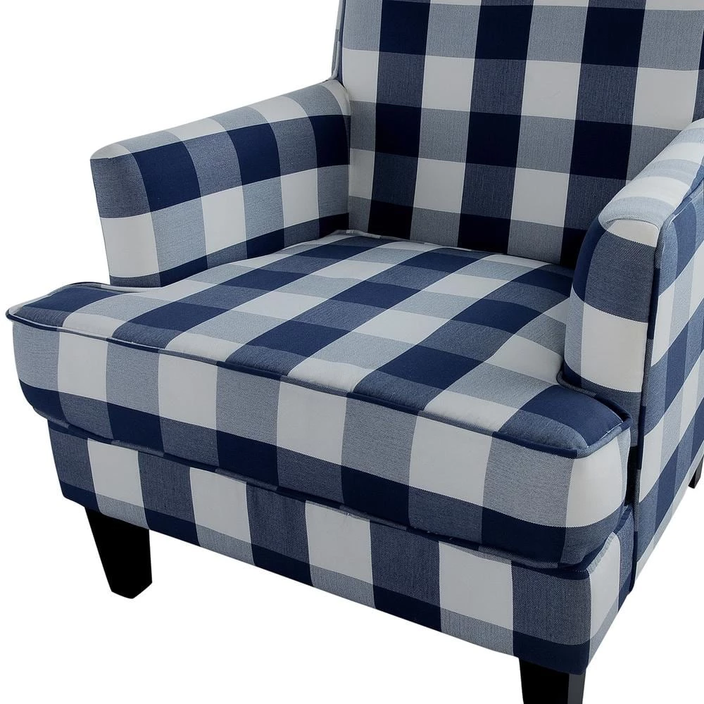 Classic style and contemporary design combine in this inviting armchair. Founded on a solid and manufactured wood frame, this chair strikes a club chair silhouette with a slightly slanted backrest, clean track arms, and tapered block feet. Its classic design along with its gorgeous pattern makes this chair a must have in any home, this armchair will be a wonderful addition to any living room, bedroom, or any other room you would like to grace with a bit more charm.