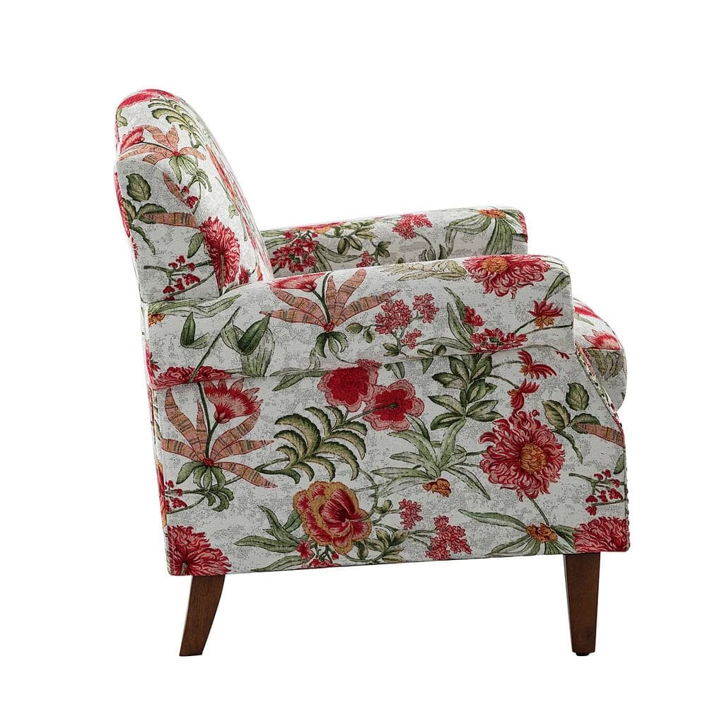 This armchair can add an eye-catching touch to your bedroom or living room. This armchair features a damask pattern and rolled arms which create an exquisite look. The nailhead trims on the arms show an elegant accent of design. Wrapped in 100% polyester, the built-in S-spring and thick foam provide you maximum comfort. This armchair is made of solid and manufactured wood and the four sturdy legs support the entire frame, so you don’t worry about its weight capacity. This armchair can bring a chic style to your bedroom or living space.
