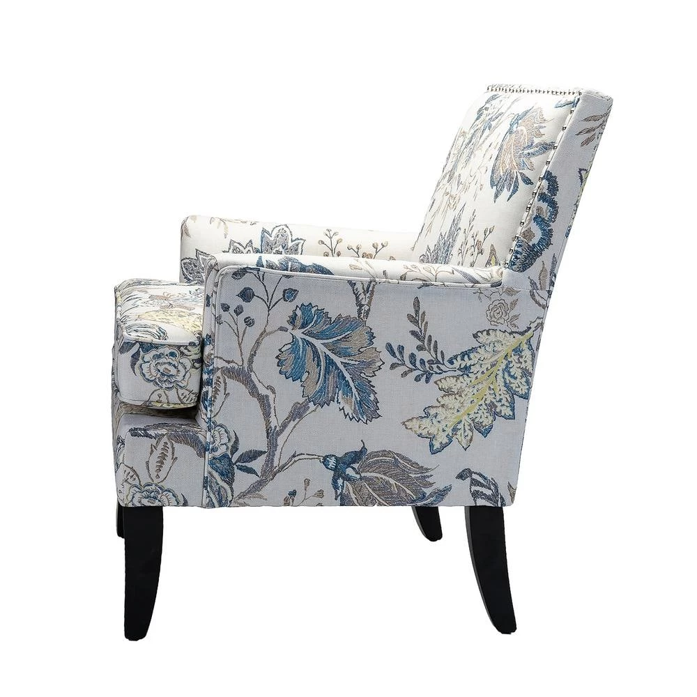 Classic style and contemporary design combine in this inviting armchair. Founded on a solid birch wood frame, this chair strikes a club chair silhouette with a slightly slanted backrest, clean track arms, and tapered block ft.. Its classic design along with its gorgeous pattern and gleaming nailhead trim makes this chair a must-have in any home. It will be suitable for those urban dwellers with limited space.