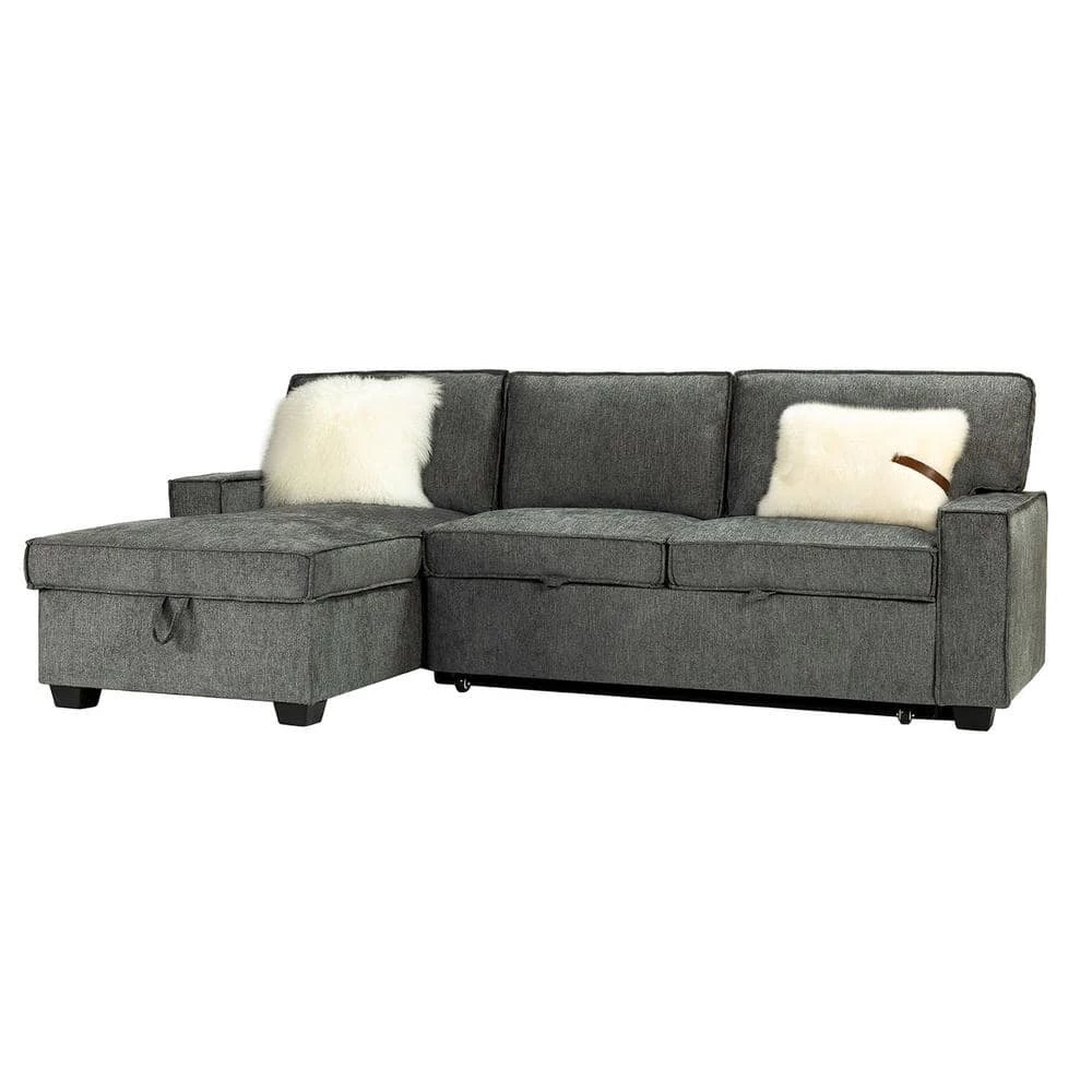 - Design: This sofa easily converts to a pull-out sleeper, while the chaise features hidden storage.