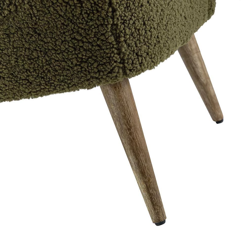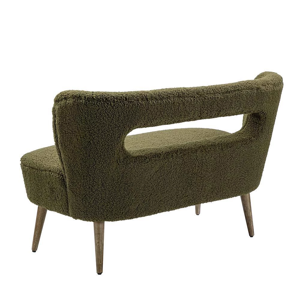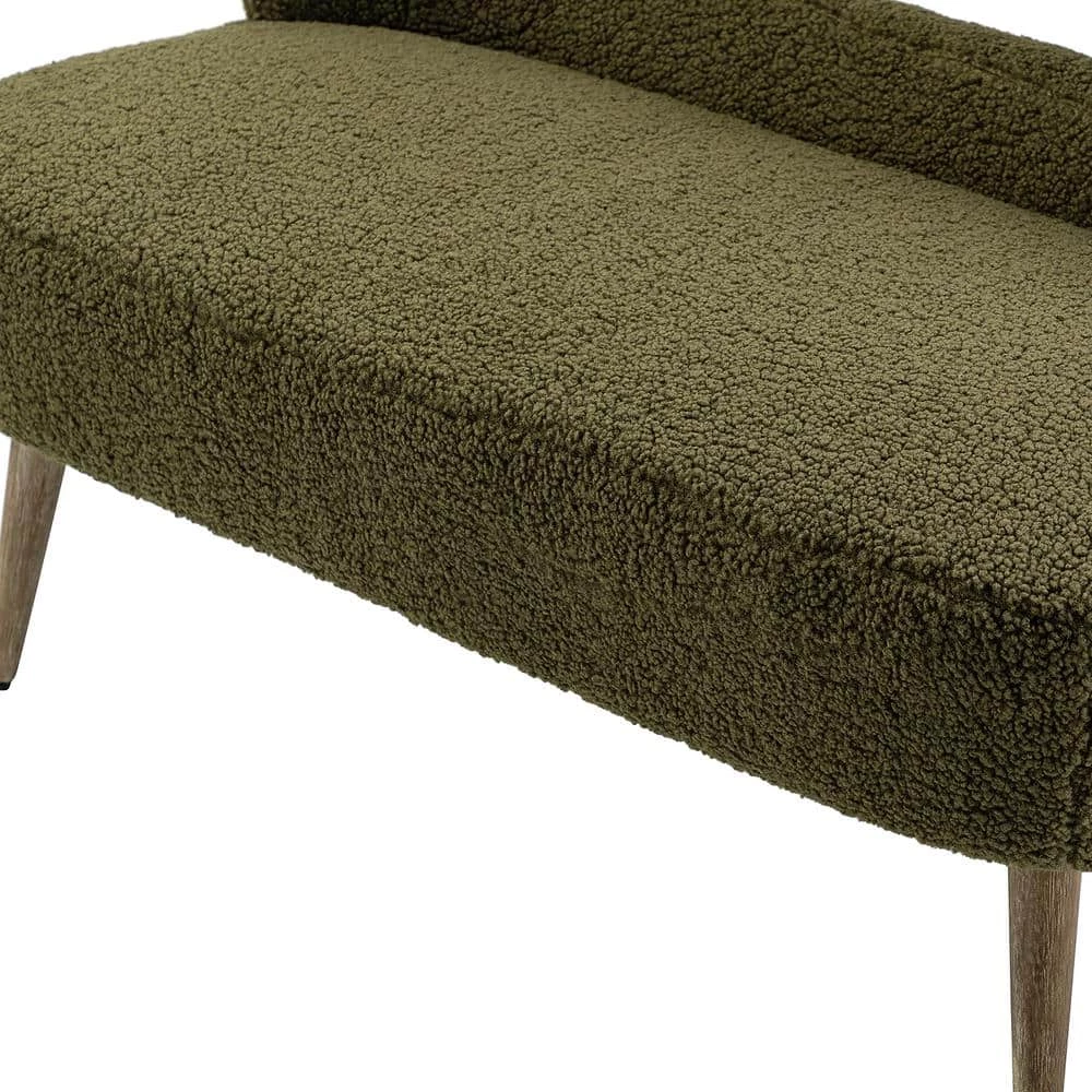 This loveseat chair will provide a fresh and pleasing look to your space and will be the center of attention with an open-back design. The medium density foam filling with a solid and manufactured wood frame provides comfort and support. Fluffy lambskin sherpa upholstery brings the comfort of sitting on the clouds. The tapered wire-brushed solid legs in driftwood finish form a combination of cozy style in a more antique way which inspires your home. The elegant curved wing back with skin-friendly and breathe surface expresses the comfort. This small loveseat sofa for you and your loved one brings the soft and warm enjoyment at home. Whether you are looking for an intimate conversation with loved one or a place to stretch out in style, you will be well covered. This loveseat will have no problems blending into your home decoration with its natural and modern style and incredible durability. It’s the perfect pick for bedroom, living room and other scenes.