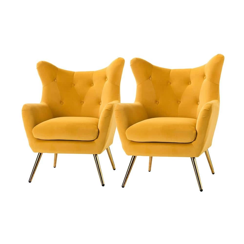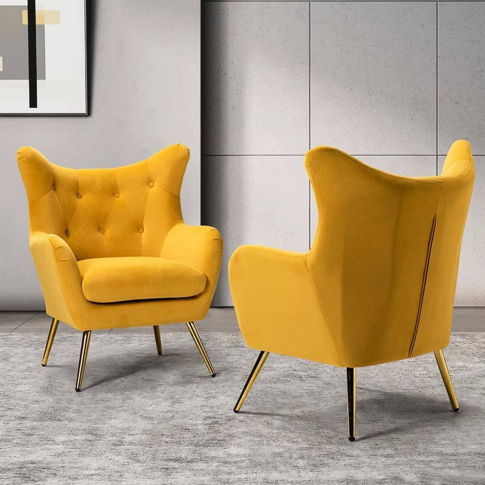 Looking to add an accent chair to your living room or bedroom. This one is in keeping with your glam sensibilities, adding an eye-catching touch to your space. This is the classic and contemporary style accent chair with wingback. Made with premium velvet fabric, comfortable for skin touch and features an on-trend solid hue that’s bound to blend in with your color scheme. High-density foam filling with a metal and manufactured wood frame provides comfort and support. The slender polished golden metal legs bring modern design and add to the timeless fashion of this piece. Plus, this chair is defined by an iconic silhouette with a dramatic wingback and flared arms, while the chair features button tufting and detail stitching for a tailored touch. Place two together to create a conversation area or pair with arm loveseat or sofa for a cohesive looks. It’s the perfect pick for living room, office room and bedroom.