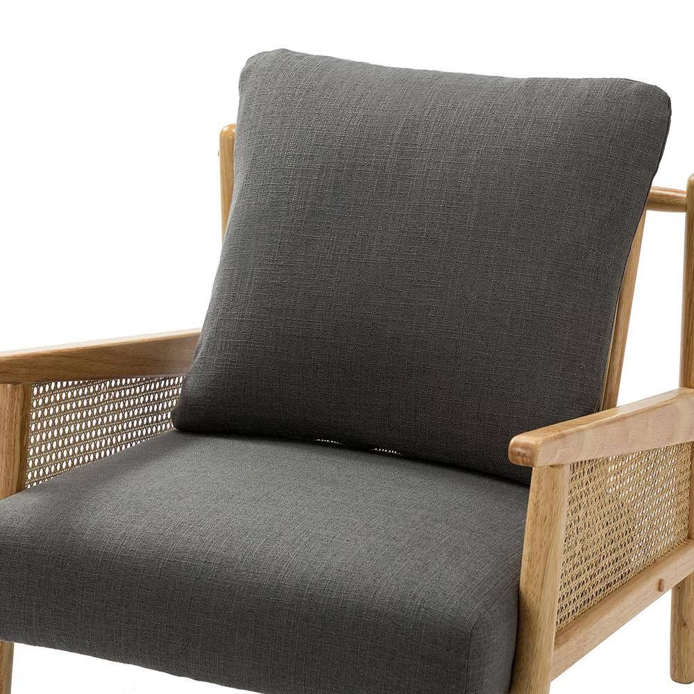 Update your living room or bedroom with an inviting armchair. Effortlessly accommodate the needs of your home with furniture that’s great for both entertaining and relaxing. The frame of the armchair is made up of sturdy solid and manufactured wood, the legs, arm, and back all use top solid wood. The whole frame has implemented a cleaner and more rational geometric aesthetics. This incredibly durable frame grants a sturdy structure, ensuring a long-term service. It’s cheerful and eye-catching to pair high-quality fabric seats filled in the high-density sponge, having the advantages of permeability and comfort. The breathable mesh rattan backrest helps to ventilate rooms and dissipate heat, maintaining a cool and dry sitting feeling. In addition to the optimal material, this distinctive dining chair is nearly perfect. At the same time, the back pillow is removable, can be used on two sides, and the core can be taken out. It’s easy to assemble. You can free up more time to spend with family and play with friends.