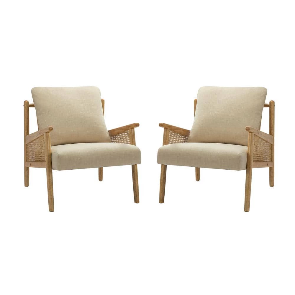 Update your living room or bedroom with an inviting armchair set. Effortlessly accommodate the needs of your home with furniture that’s great for both entertaining and relaxing. The frame of the armchair set is made up of sturdy solid and manufactured wood, the legs, arm, and back all use top solid wood. The whole frame has implemented a cleaner and more rational geometric aesthetics. This incredibly durable frame grants a sturdy structure, ensuring a long-term service. It’s cheerful and eye-catching to pair high-quality fabric seats filled in the high-density sponge, having the advantages of permeability and comfort. The breathable mesh rattan backrest helps to ventilate rooms and dissipate heat, maintaining a cool and dry sitting feeling. In addition to the optimal material, this distinctive dining chair is nearly perfect. At the same time, the back pillow is removable, can be used on two sides, and the core can be taken out. It’s easy to assemble. You can free up more time to spend with family and play with friends.
