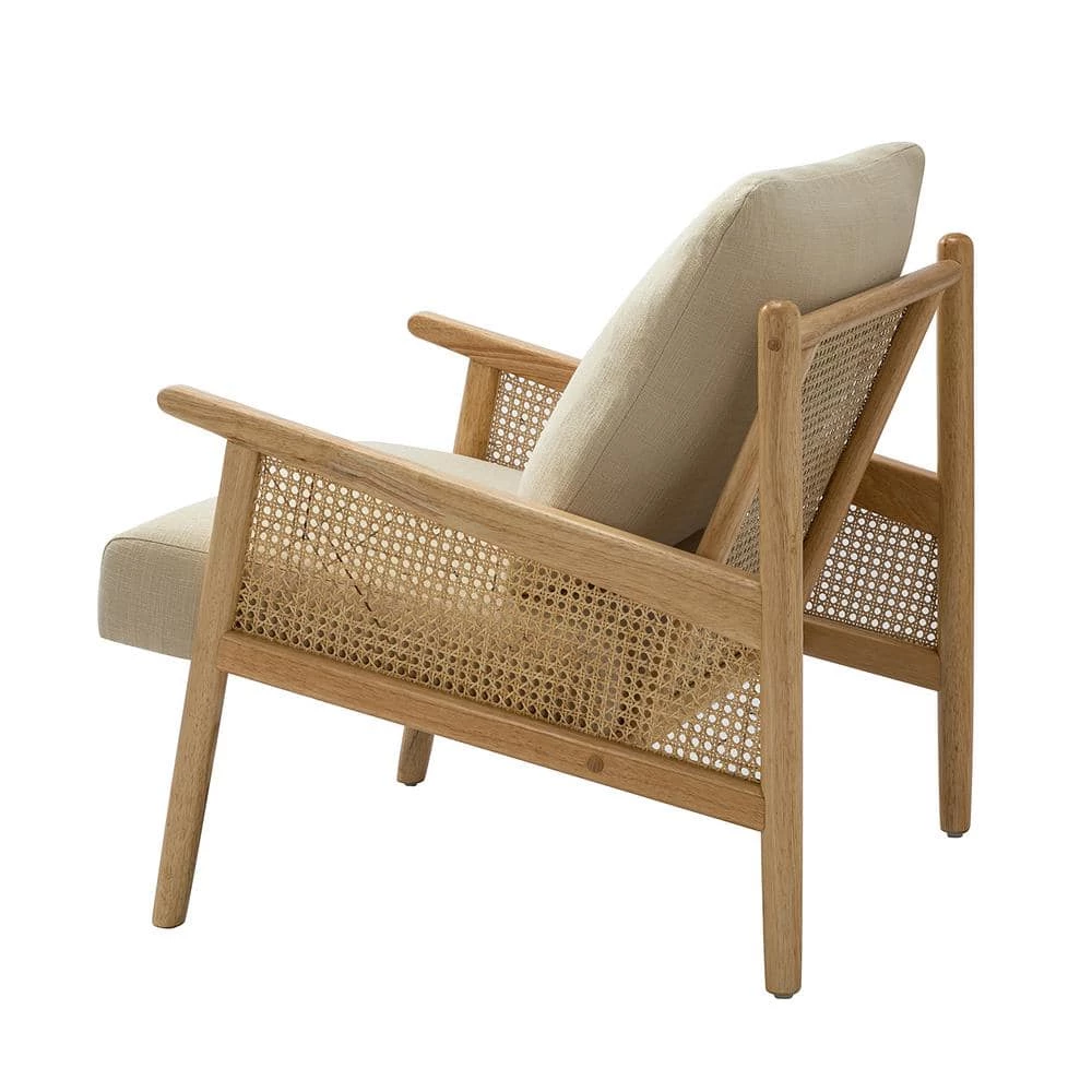 - Fashion-forward Piece: Unique arm and rattan design for a chic look.
