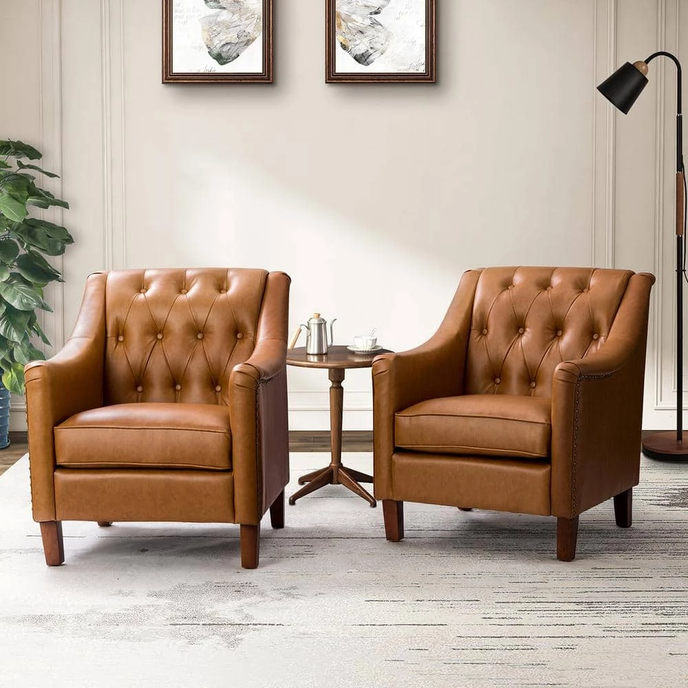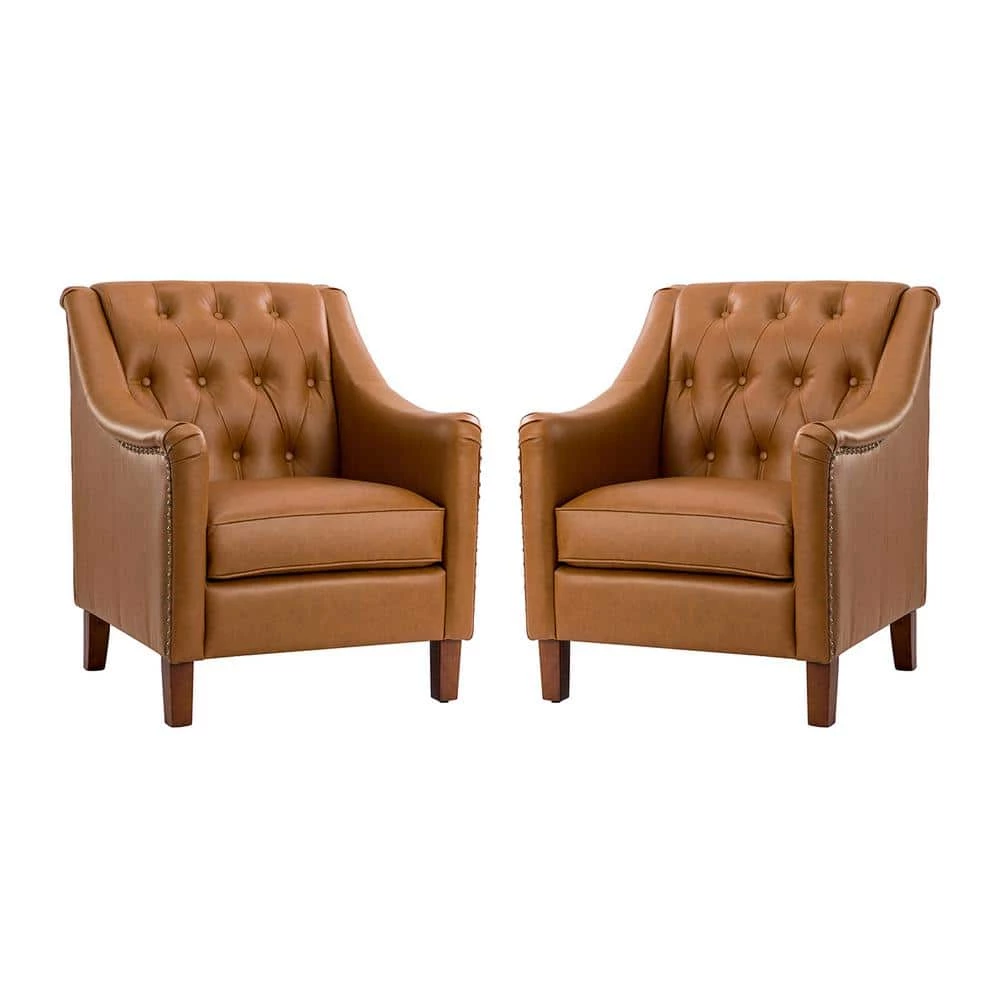 Still struggling to find an appropriate armchair for your home. This ahead of the trend transitional design will not let you down. Nailhead trim lines the chair shape and introduces an unexpected touch for a hint of traditional charm. With its button tufted back and sloped arms, this armchair mixes easily with other decor styles. To it credit, the built in pocket spring wrapped in textured vegan leather adds extra comfort and disperses the pressure of your body when you sit on it. The streamlined design makes it a versatile piece that’s ideal in smaller spaces, whether in a sitting area or next to a bed.