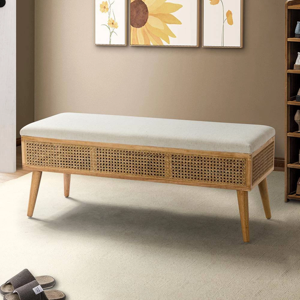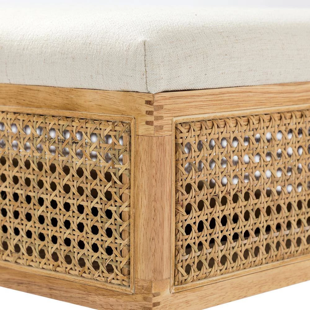 Striking in its simplicity, our bench emphasizes clean lines and unfussy design, from the planked-style wood to streamlined silhouettes. Four solid wood legs support its sturdy wood frame for reliable weight capacity while the comfortable foam is filled to ensure your superb sitting feeling. Built with solid and manufactured wood and a charming rattan design, this bench is a convenient spot for decorative displays. It’s designed to bring you an exceptional value, without ever cutting corners on quality or craftsmanship.
