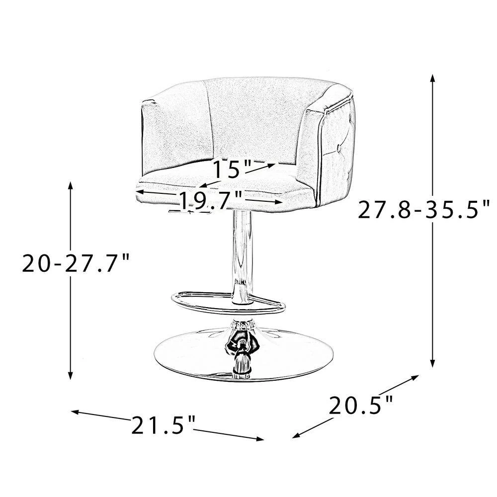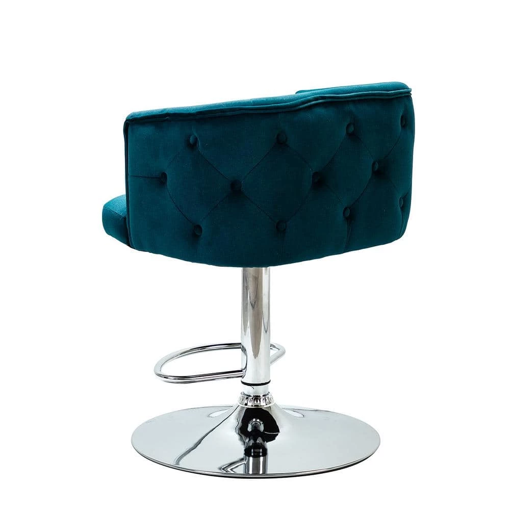 Whether you need a cosy place to sit for eating, working, relaxing or making up, this functional yet stylish bar stool set including two single chairs will feed your taste. Standing atop a pedestal-style metal base finished in a bright silver hue, this sleek addition attracts enough eyeball. Adapt to all styles effortlessly, its solid and manufactured wooden construction wrapped in velvet fabric is filled with foam for permanent comfort as the button-dotting tufted barrel-shaped back provides you reliable support, adding a dash of distinction. Paired with an open circular footrest and lever operation tilt, this upholstered hight-adjustable swivel bar stool in classic style brings you an enjoyable user experience. The humanized design of rubber ring under the base protects your floor from scratching when you move it to another place. It will be an ideal addition to your kitchen, bar, living room or dining areas, decorate the scenes to the fullest.