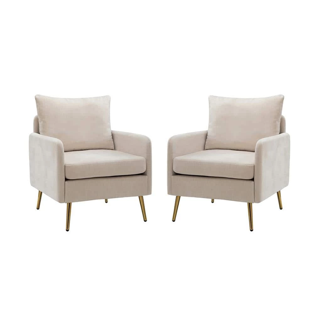 A statement making silhouette and painstaking details make this handsome contemporary armchair set the perfect sidekick. With a sturdy wood frame, this modern work of art boasts a glamorous boxy silhouette and showcases an approachable aesthetic while the removable cushion adds a touch of elegance to it. With premium polyester fabric, the seat cushion is filled with thick foam and the back cushion is filled with soft PP cotton for ultimate comfort, while plated metal legs ensure reliable durability and high quality, suitable for all kinds of styles. This timeless fashion set will not fail to blend with your home decor with its rich color selections. At any time, this chair set provides an essential spot for sitting and enjoying a good book or catching up on your favorite show, effectively relieving the pressure. It’s the perfect pick for the living room, office room, and bedroom.