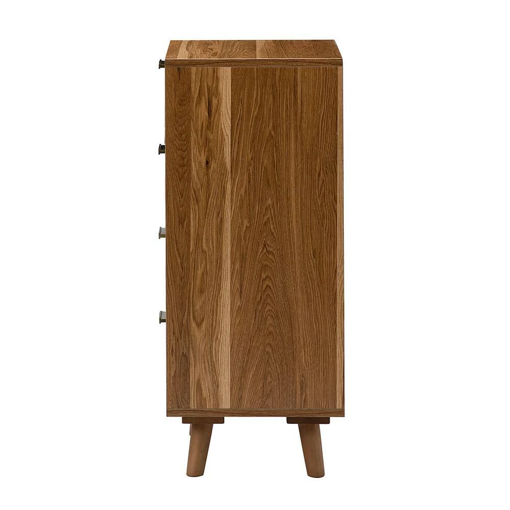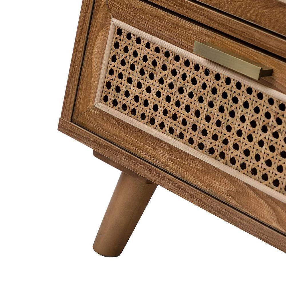 Still struggling with space.organization. This chest provides a perfect choice for, you. Easily keeping clutter under control with this chest constructed of solid and manufactured wood in a classic finish. Striking a boxy silhouette, this piece features four drawers with metal bar pulls, four sturdy legs that offer perfect stability and durability. This solid and manufactured wood frame represents a long life with a charming rattan design, the rattan part also adds a sense of elegance. Blending perfectly with your home decor in every style, this piece helps you to create functional bedroom or utility room storage options.