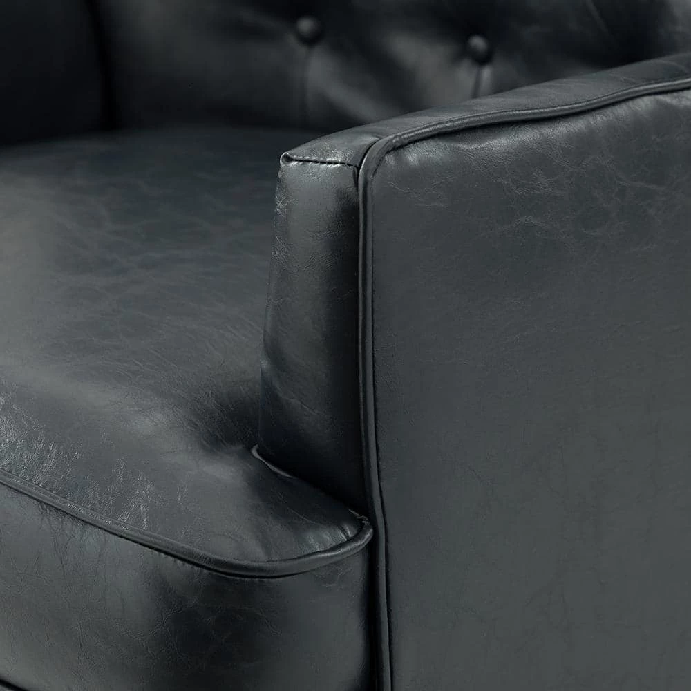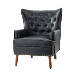 The perfect transitional-look piece to complete your modern decor, this attractive wood frame chair has it all: style, comfort, and durability. This armchair.features nailhead trim and deep button tufting that adds classic glam style to your living room.or den. This strong structure wrapped in comfortable, skin-touch friendly and soft vegan leather blended with vivid random colors hues elevates the feel of a minimalist aesthetic. It boasts a sinuous S-spring in both the seat and back for improved lumbar support and durability. This armchair.is suitable for all decors that you need.