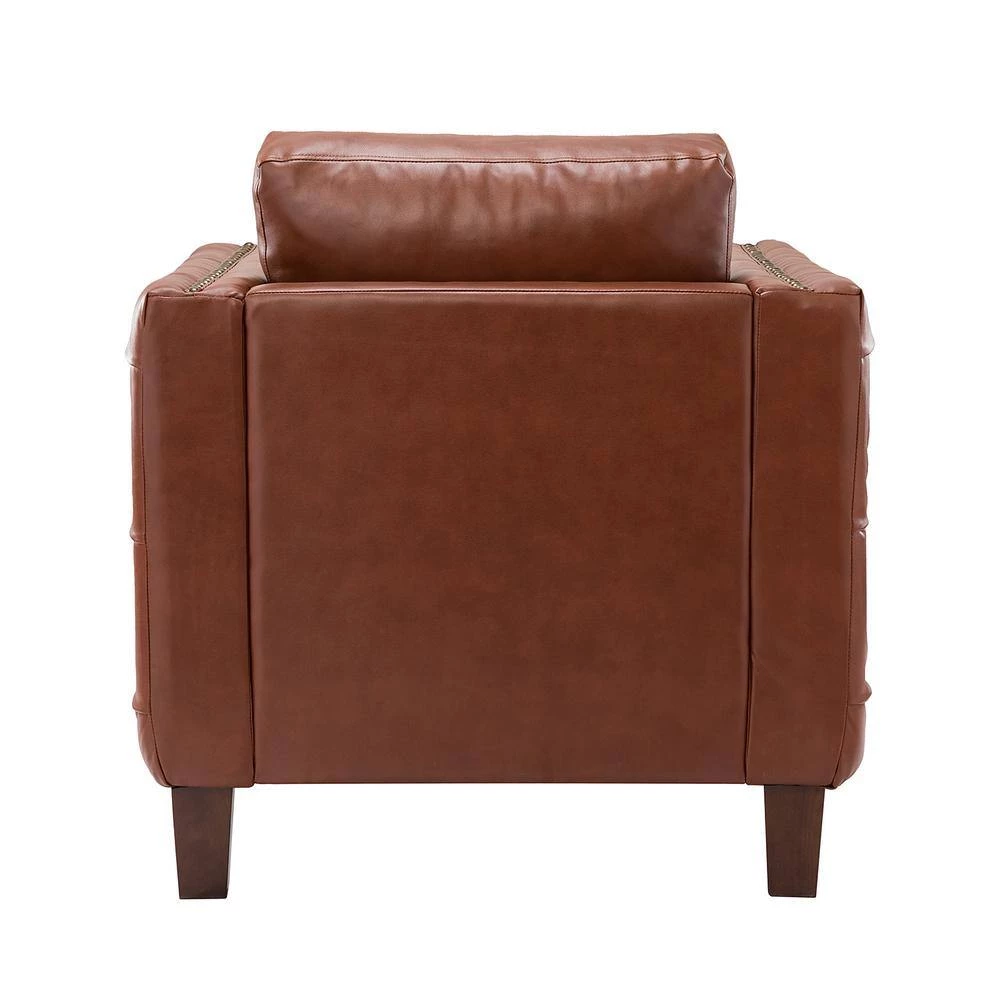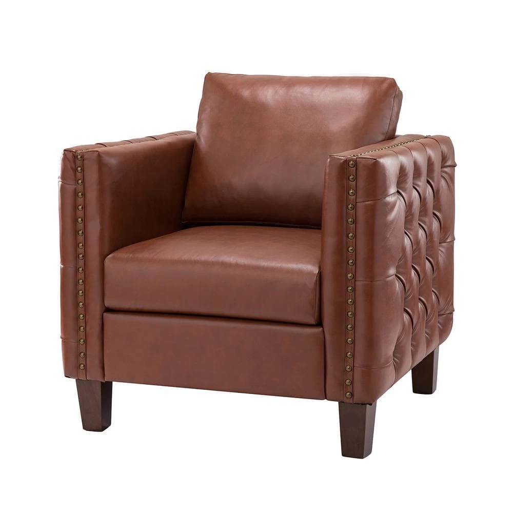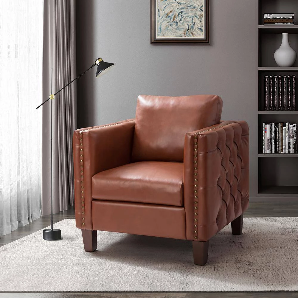 The perfect contemporary-look piece to complement your home decor with its abundant color palettes, this charming solid and manufactured wood frame club chair has it all: style, comfort and durability. With four solid wood legs, this modern work.of art boasts a glamorous boxy silhouette and showcases an approachable aesthetic while the removable back cushion adds a touch of elegance to it. This strong structure is covered with premium faux leather fabric and filled with thick foam, soft polypropylene fiber for.ultimate comfort, suitable for all-kinds of styles. Incorporating the modern and classic style effor.lessly in a gentle appeal, this accent club chair with attention paid button-tufted arms which round out by the delicate nailhead trim, brings unfor.ettable enjoyment as you curl up with a cup of chamomile or relax with your latest read. It’s the perfect pick for the living room, office room and bedroom.