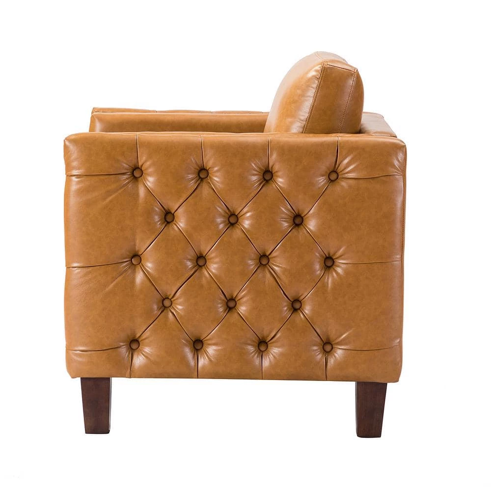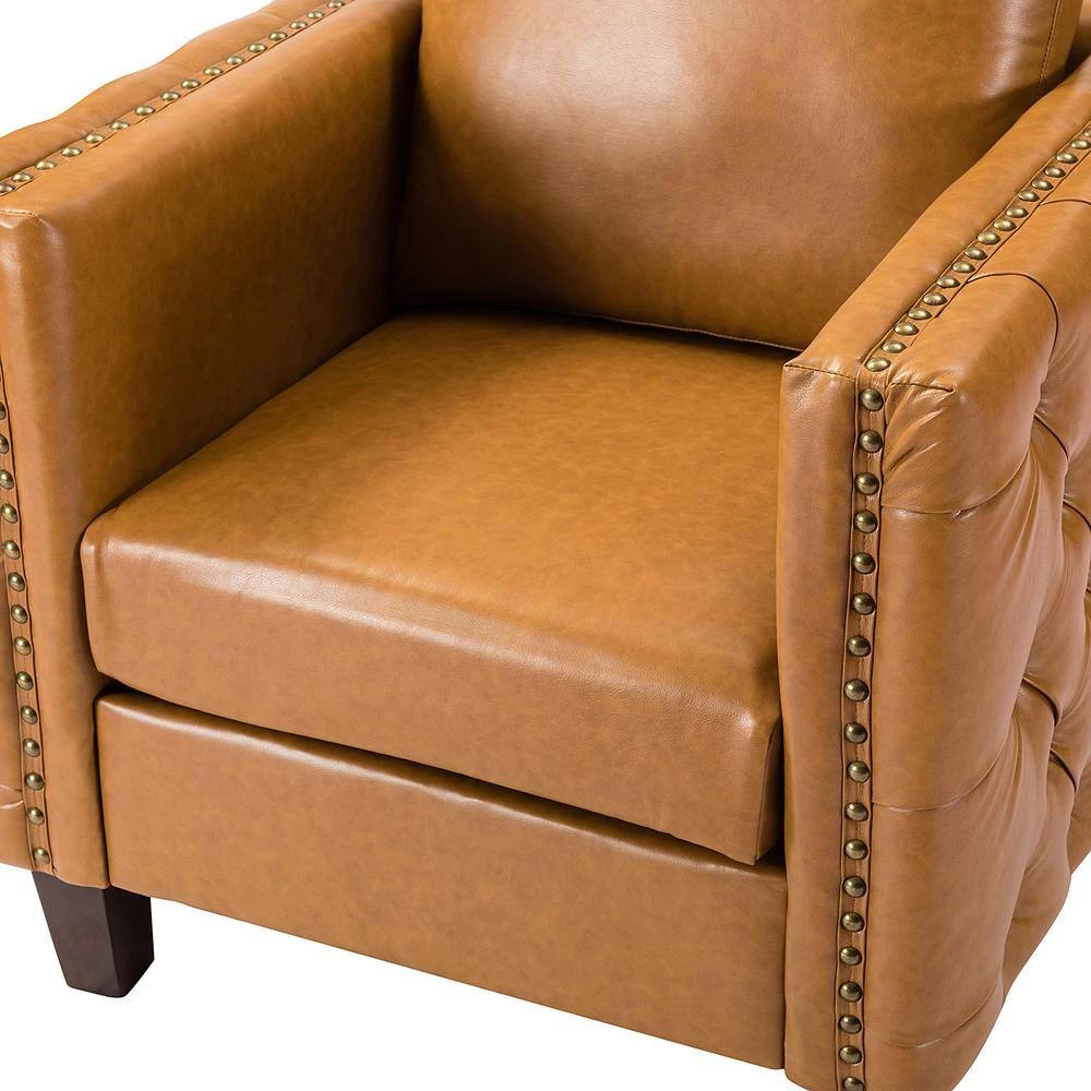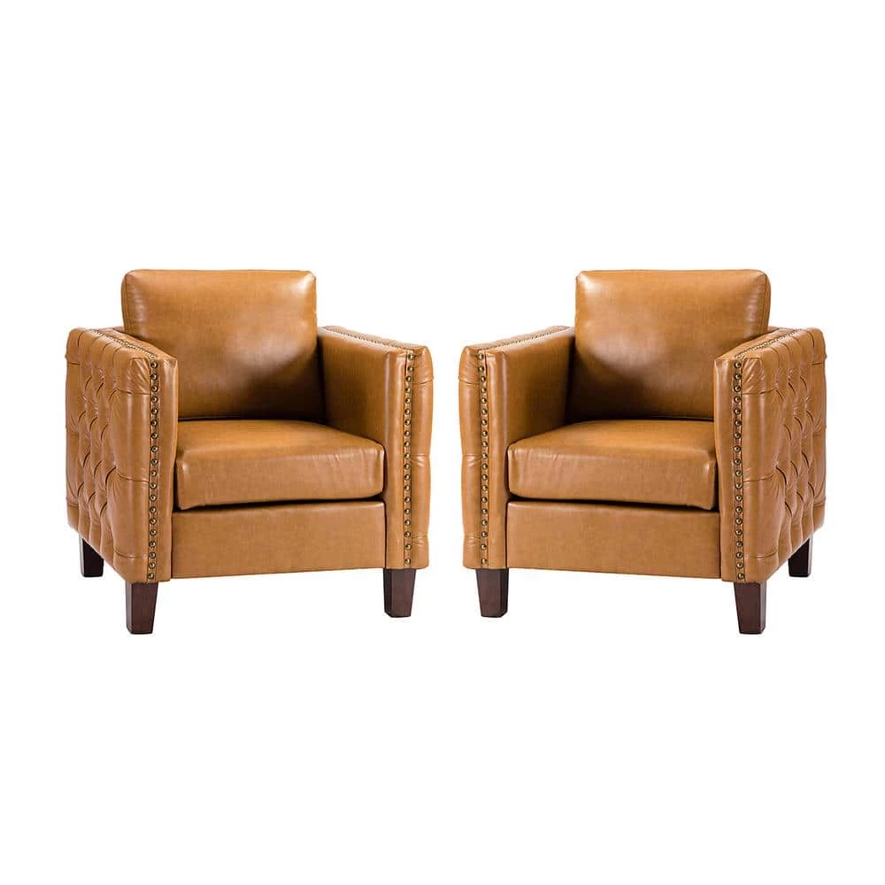 The perfect contemporary-look piece to complement your home decor with its abundant color palettes, this charming solid and manufactured wood frame club chair set has it all: style, comfort, and durability. With 4 solid wood legs, this modern work of art boasts a glamorous boxy silhouette and showcases an approachable aesthetic while the removable back cushion adds a touch of elegance to it. This strong structure is covered with premium faux leather fabric and filled with thick foam, soft polypropylene fiber for ultimate comfort, suitable for all kinds of styles. Incorporating the modern and classic style effortlessly in a gentle appeal, this accent club chair set with attention paid button-tufted arms which round out by the delicate nailhead trim, brings unforgettable enjoyment as you curl up with a cup of chamomile or relax with your latest read. It’s the perfect pick for the living room, office room and bedroom.