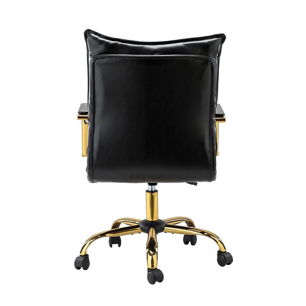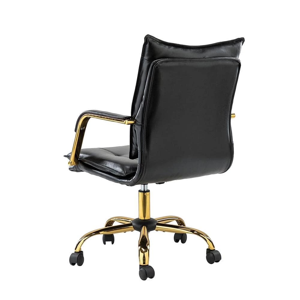 This office chair is an ideal pick, whether you’re completing your home.office or office conference room. It’s built with a metal and wood frame and features a comfortable.back that provides lumbar support. Comfortable.armrests offer additional support as you tackle your to-dos. The chair is upholstered in polyurethane and is filled with foam for just the right amount of cushion. Subtle tufted back and seat create a tailored aesthetic. The star-shaped base has 5 bent legs with casters that allow you to roll throughout your space. Plus, you can change the height of the seat, and swivel a full 360°.