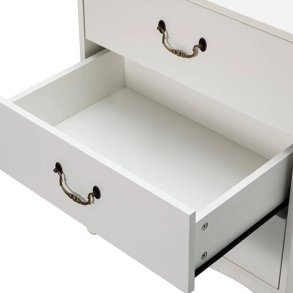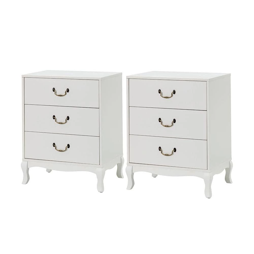 This transitional-style nightstand set is the result when retro-inspired details are infused with modern lines updating the traditional for, s we all love and treasure. Featuring three drawers to reveal roomy storage areas for, your remote control, keys, latest novels and more, its flat tabletop is the best spot to hold your family album and table lamp. Anchored in the retro cabriole legs, glam drop handles, and clean-lined wooden frame that defines this design aesthetic, the elegant solid hues finish brings it to life. Wake up your style with this chic nightstand set and put some sophistication into your daily routine, from the bedroom. to the living space.