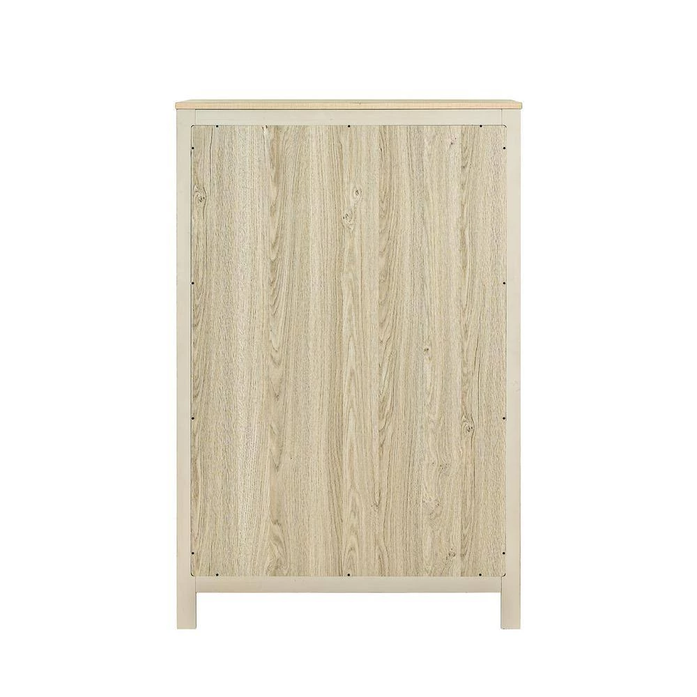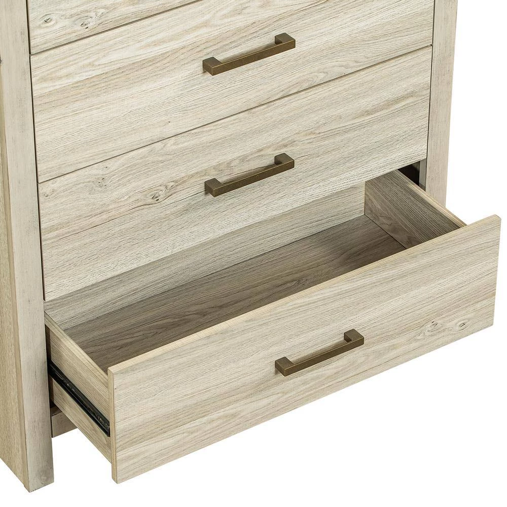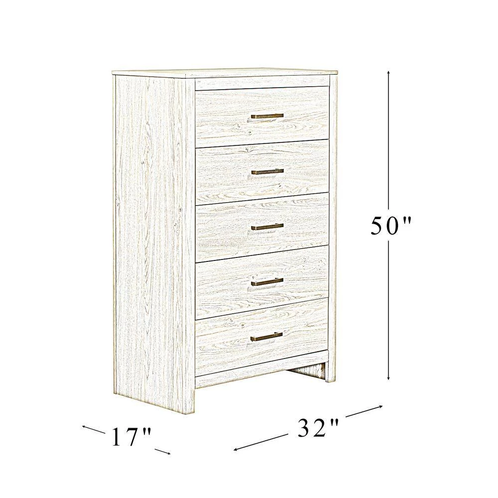 This 5-drawer chest is an essential piece of furniture that is both charming and simple. This elegant and contemporary design will provide storage in any room in your home thanks to its versatile styling and practical function. This chest includes 5 convenient and practical drawers with smooth metal drawer glides and straight metal handles. Each glide, made of high-grade cold-rolled steel, features steel ball-bearing action for a smooth sliding experience. Besides, it showcases a flat top that offers additional display space for lamps, decorations, and family photos. Crafted of high-quality solid and manufactured wood and durable hardware is quite stable and solid to use in long term. The clean lines will blend with any bedroom. decor or furniture. Look no further, buy it.