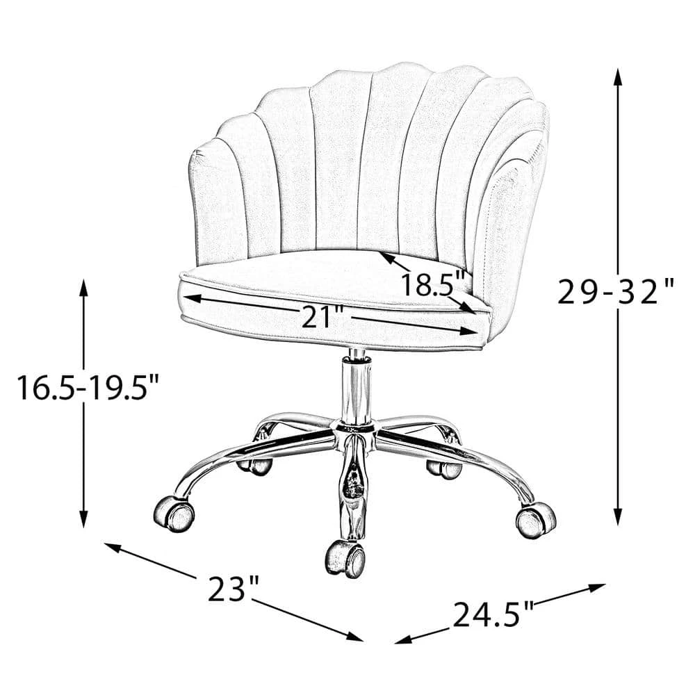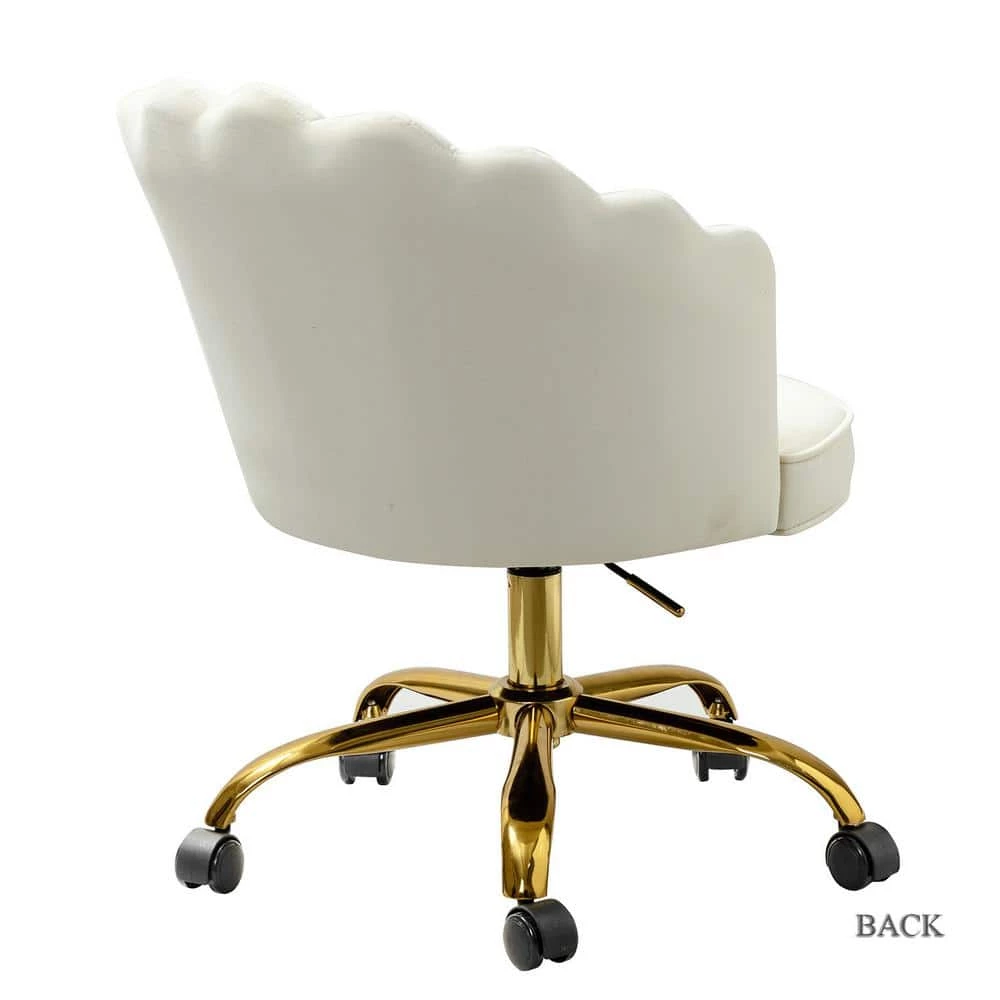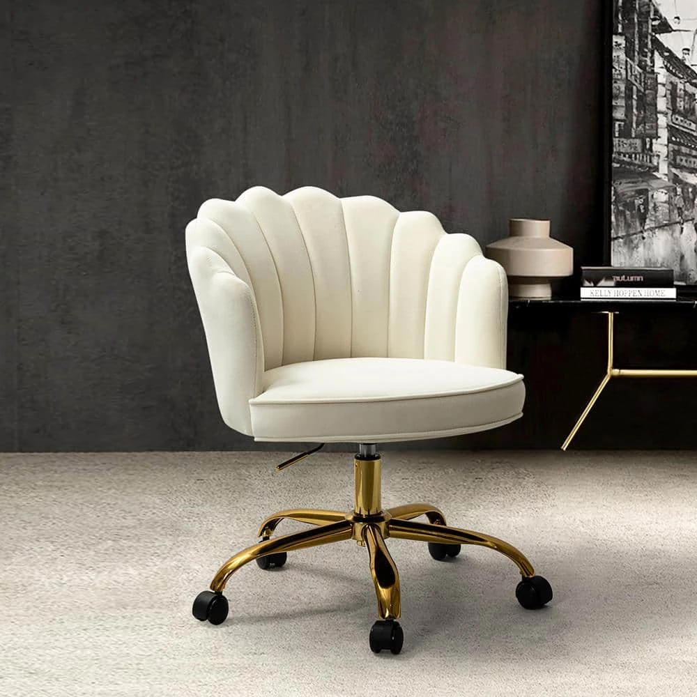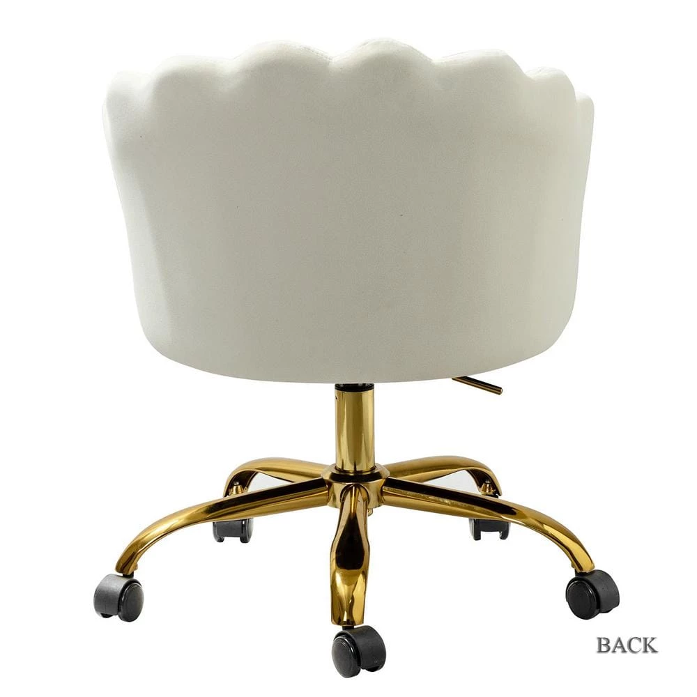 Add a touch of contemporary elegance to your space with a design that is equally functional and stylish. This modern swivel office chair is a wonderful addition to any office or home office with its variety vibrant colors-velvet fabric upholstery that blends with any design taste. Designed in a chic style with flower shape back, tufting and piped edges lend a tailored touch, while foam fill offers comfort and support. Sturdy and durable golden finish metal base and 360°wheels allow you to glide to anywhere in the room, height-adjustable to tailor your professional space. The cute computer chair is ideal for any casual or professional working area. It provides comfortable support with a cozy and convenient design.