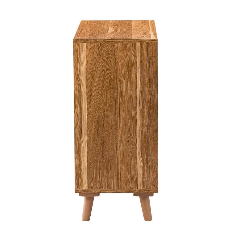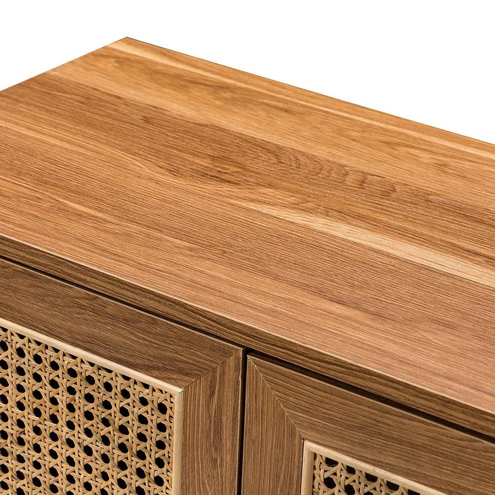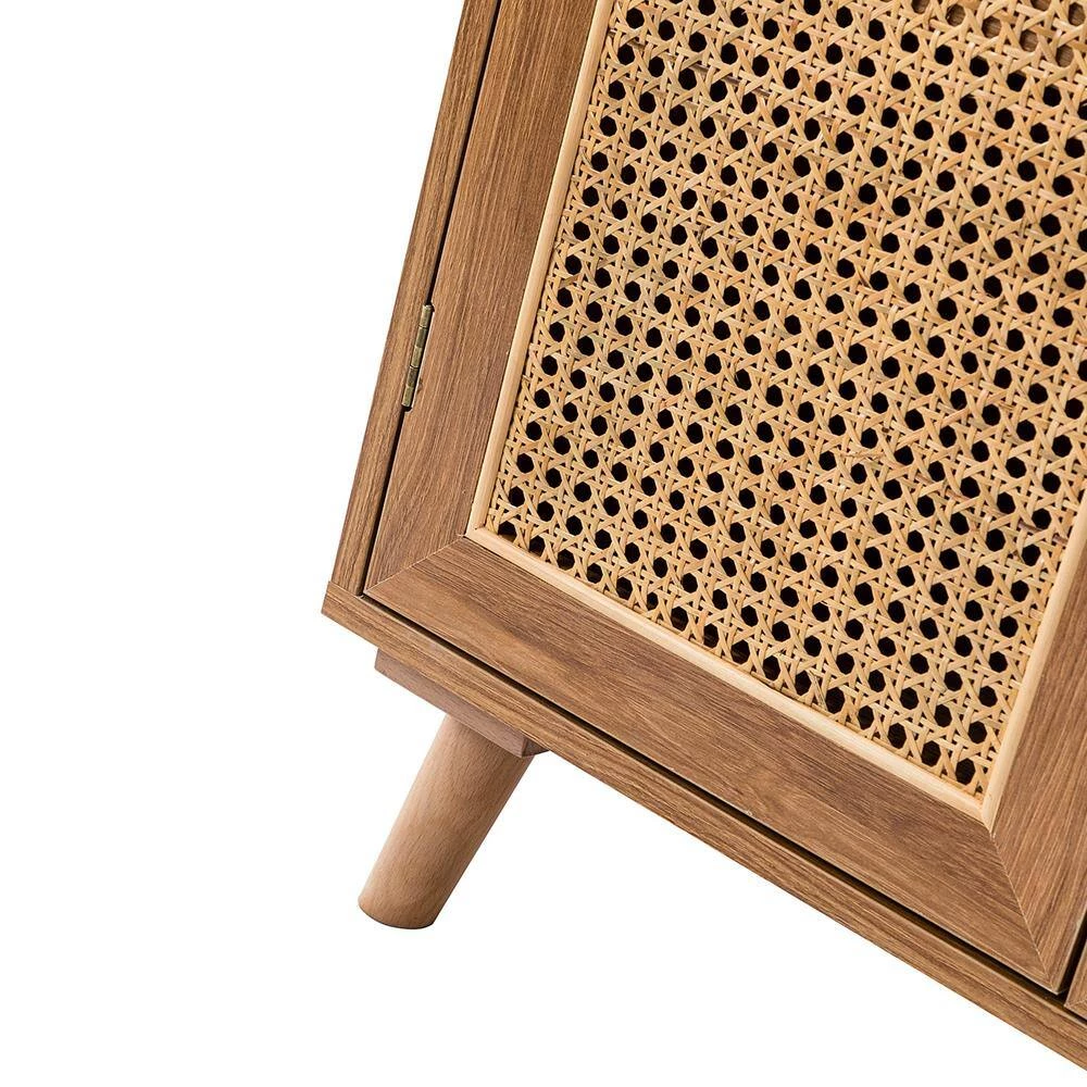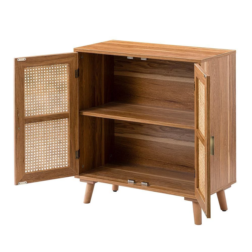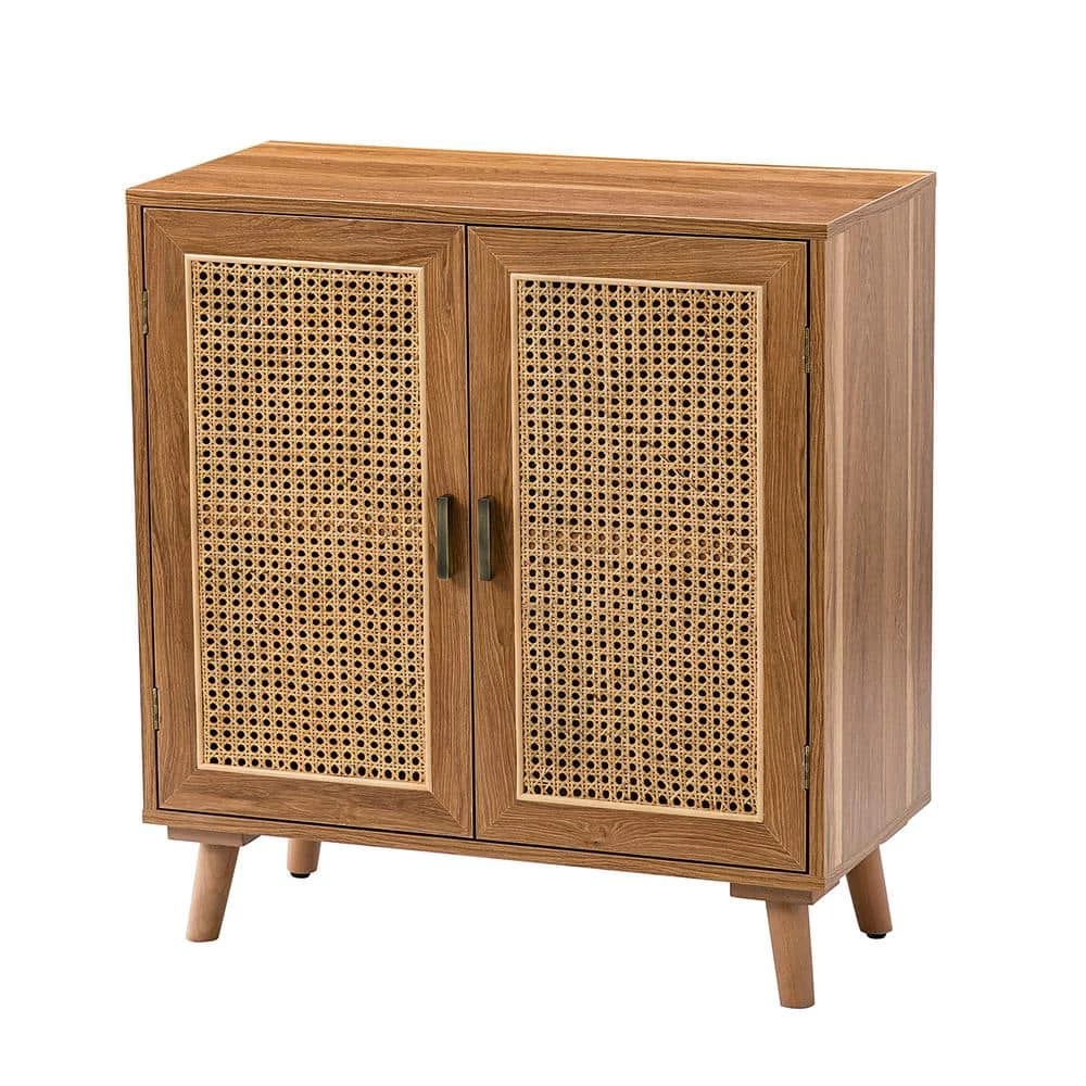 With the time.ess art of design and extensive storage options in your environment, this understated and charming accent cabinet is sure to complement your home in a simple contemporary style. Easily keeping clutter under control with this cabinet made of solid and manufactured wood in a classic finish. Behind its double rattan doors with retro metal bar pulls is a hidden storage area that includes two spacious shelves, providing plenty of storage to sort out. This sturdy frame standing atop four legs features a long using life with perfect stability and durability. Blending perfectly with your home decor.in every style. this piece helps you to create a functional living room, dining room, or bedroom storage options.