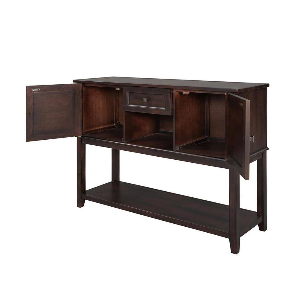 Effortlessly fill in that blank space in your home with this console table, designed to fit all of your needs and more. Crafted with a classic appearance, this table comes complete with two front-facing cabinet doors that open to reveal 2 spacious interiors, perfect for stowing away your larger necessities and keeping them out of sight. The drawer in the middle and one open space could minimize clutter, offering plenty of space to hold smaller items such as keys or mail while the spacious bottom shelf is the perfect place for storage baskets, shoes, and more. This console table is sure to bring a brand-new look to your family and more convenience to life.