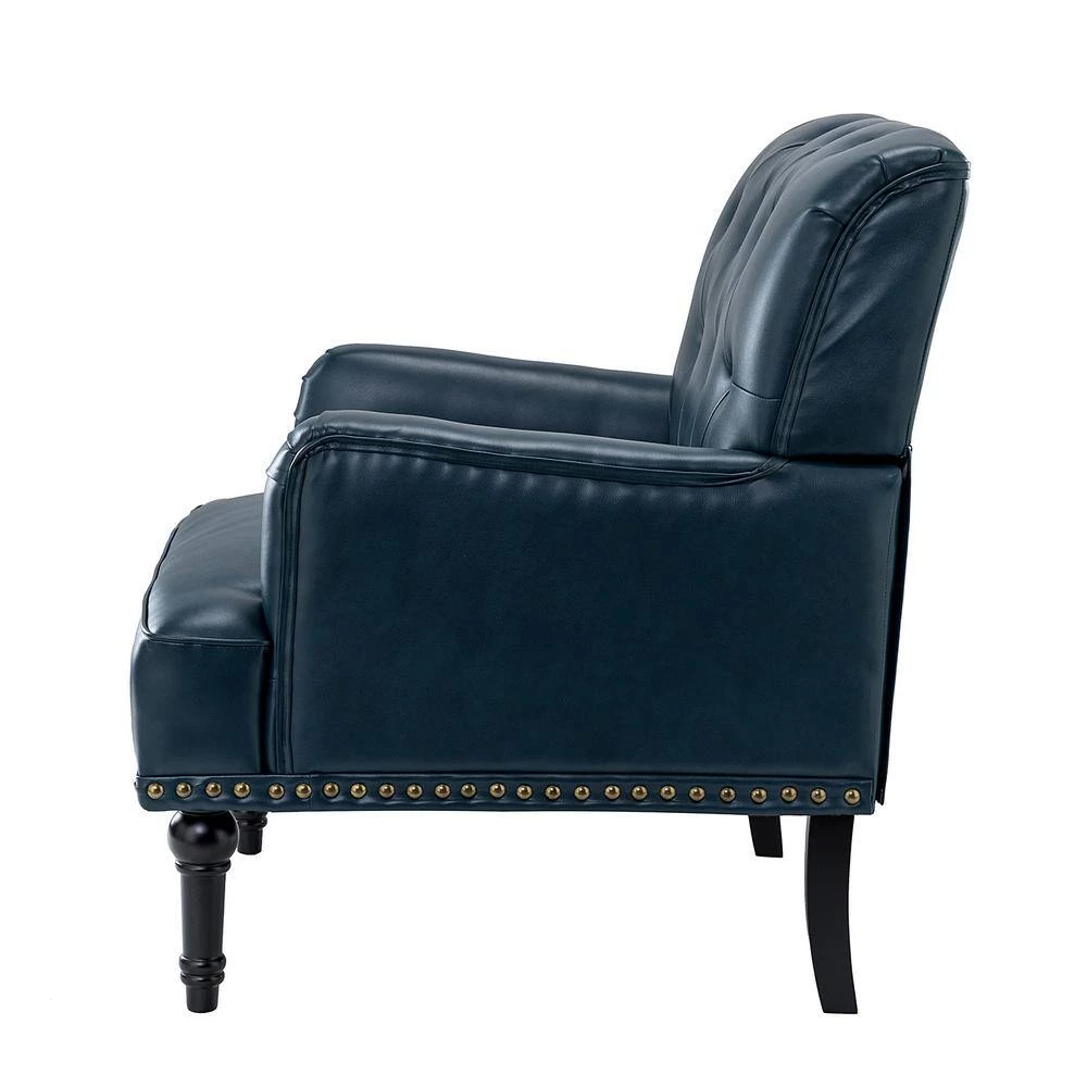 Unique style and classic design combine in this inviting armchair. It features a sturdy wood frame, wrapped in PU upholstery with a button-tufted design, elegantly carved front legs, and simple back legs that offer a visual variation. The foam-filled back provides extra support, while the nailhead trim adds a dose of vintage design to it. It is suitable for most of your daily scenarios such as study room, bedroom, and living room. Whether you’re enjoying quality family time or entertaining guests, this armchair will extend an open invitation for everyone to relax.