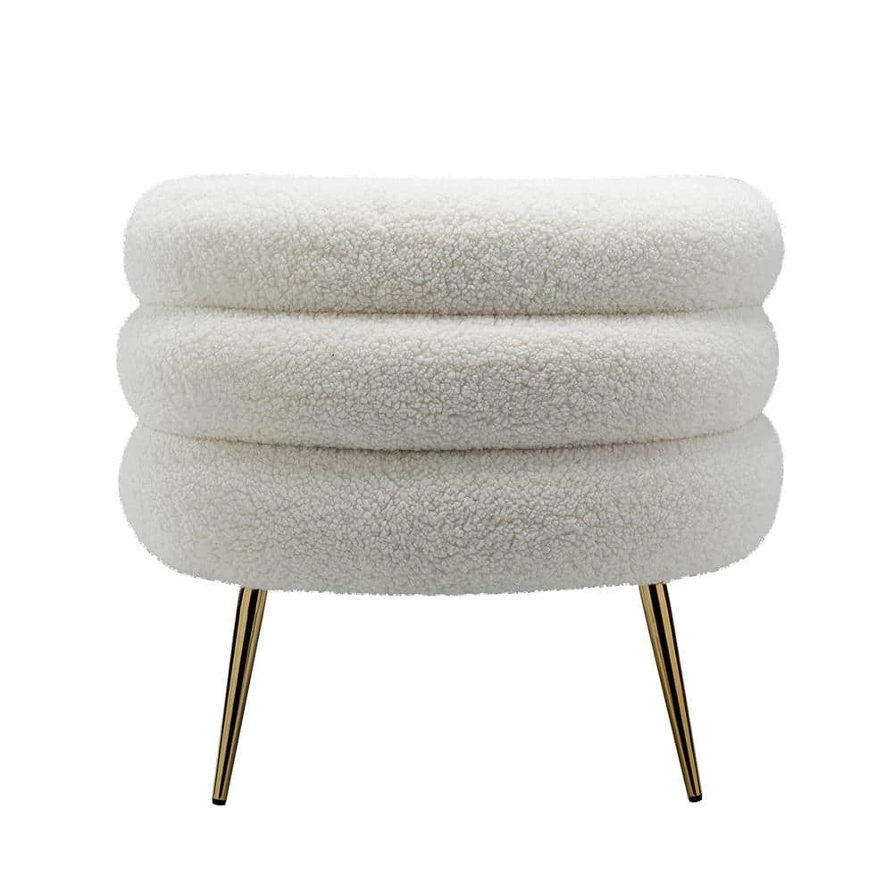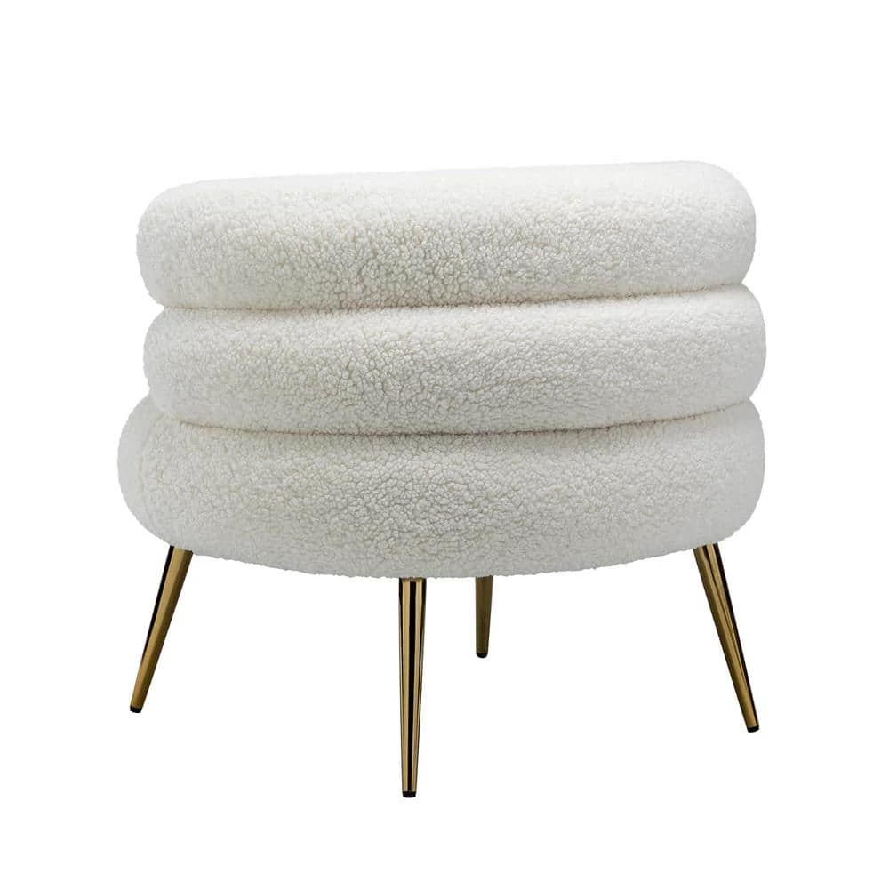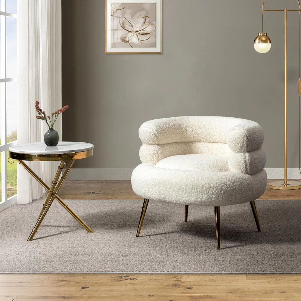 Elevate your free time and move with effortless ease in this stunning barrel chair. The combination of unique shape backrest and gold legs exudes unique attractiveness. Its soft seat complemented with cozy fabric is timeless and inviting. This eye-catching chair will add a pop of style to any space. This barrel chair is novel in shape, suitable for living room, bedroom, home office, gorgeous color, unique shape, will add some vitality to your life. Plus, it comes with a small PP cotton toss pillow.